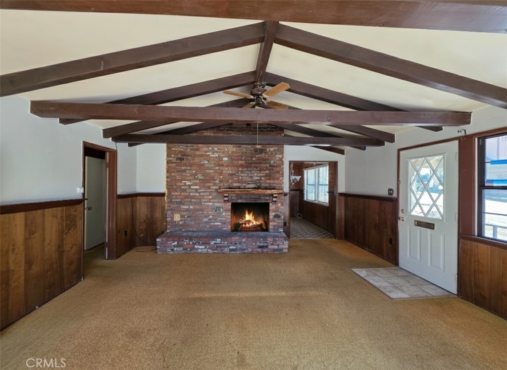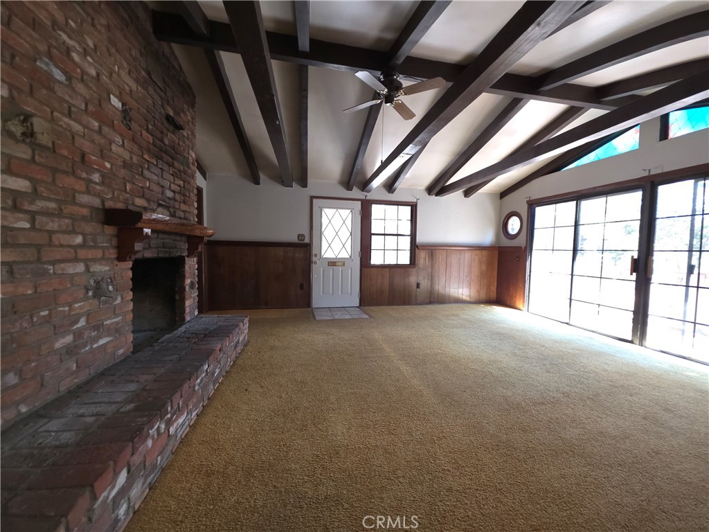 Situated just steps from Green Valley Lake, this mid-century mountain chalet offers a rare combination of setting, style, and accessibility. Built in 1962, the home reflects its era with exposed beam ceilings, natural wood interiors, and generous windows framing the surrounding pines. The south-facing orientation provides soft light throughout the day, creating a warm atmosphere across both levels of living space. The main floor centers on a comfortable living room anchored by a classic stone fireplace, while the adjoining kitchen features its own fireplace—a distinctive touch rarely found in mountain homes. Three bedrooms and two baths provide ample accommodation for full-time or seasonal use, and the flexible layout allows for both gathering and quiet retreat. Two decks extend the living space outdoors, ideal for taking in the wooded views and crisp mountain air. The lot includes level parking and a level entry from Spruce Drive—an especially valuable feature during the winter season. Surrounded by mature trees and mountain air, the property sits approximately 0.1 mile from the public beach and fishing pier, 0.2 mile from the Green Valley Lake General Store and Café, and 0.3 mile from local forest trailheads. Whether envisioned as a classic renovation project or a serene mountain hideaway, this property’s proximity to the lake, dual fireplaces, and mid-century character make it an exceptional opportunity in the heart of Green Valley Lake.