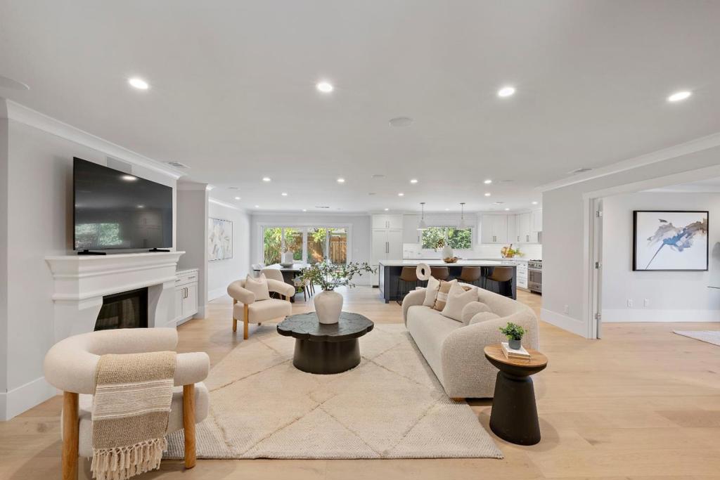 Welcome to this stunning 5-bedroom, 4-bath turnkey home featuring all the modern updates youve been waiting for. Designed with both style and function in mind, this spacious residence boasts an open-concept floor plan, abundant natural light, and high-end finishes throughout. The chefs kitchen includes a large island, sleek countertops, custom cabinetry, and stainless-steel appliances, flowing seamlessly into the dining and living areas perfect for entertaining. The primary suite offers a luxurious retreat with a spa-like bath and large walk-in closet. The additional bedrooms are generously proportioned and highly versatile, with two featuring their own private ensuites creating the perfect retreat for family, guests, or a refined home office. Outdoor living is just as impressive with a beautifully landscaped park-like backyard and patio space for relaxation or play. Truly move-in ready, this home combines comfort, convenience, and contemporary style.