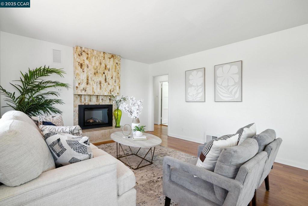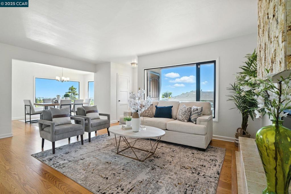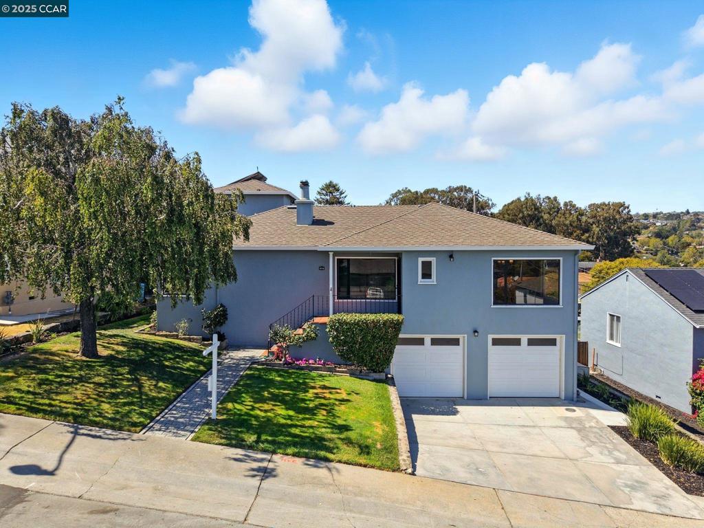 Nestled in the tranquil hills of San Mateo, this expanded 4-bedroom, 2.5-bath home offers approximately 1860 plus sq. ft. of flexible living space with sweeping views of the San Francisco Bay. Refinished hardwood floors, a new electric fireplace, updated electrical, a ventless hood and cooktop, fresh paint, and new decking blend timeless charm with modern upgrades. The oversized garage—with parking for two cars, including a tandem space—features new concrete flooring, updated piping, and a complete sewer lateral replacement, offering ample room for vehicles, storage, or a workshop. Outdoors, enjoy newly landscaped grounds with Orange and Lemon trees, an expansive view deck, inviting patios, and a covered gazebo designed for gatherings and family traditions. An addition completed in the late 1960s created the fourth bedroom. The additional sq. ft. of living space added is unknown and was never reflected on the tax roll. A rare opportunity to enjoy comfort, versatility, and views in a peaceful neighborhood just minutes from Peninsula conveniences.