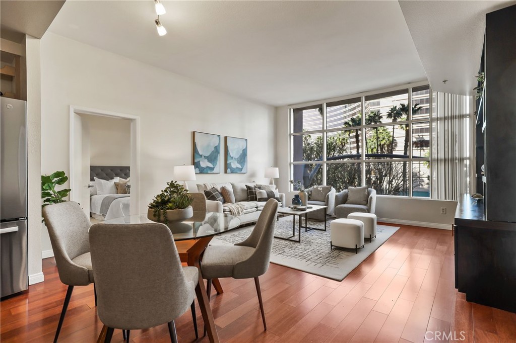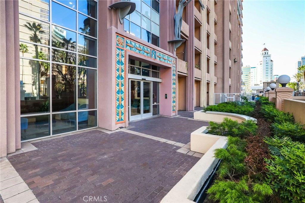 Welcome to Aqua, one of Downtown Long Beach’s most sought-after luxury high-rise communities—where beach proximity meets vibrant city living. Perfectly designed for those who crave both style and convenience, this corner unit 1,120 sq ft, 2-bedroom home, each with en suite baths, offers a smart split-wing layout ideal for privacy. Soaring 10-foot ceilings and floor-to-ceiling windows flood the home with natural light, framing dynamic city views and creating an airy, loft-like feel. The expansive living room features a built-in entertainment center and your front-row seat to city lights and the greenbelt view. The stylish kitchen opens to the main living room and dining area, making it perfect for gathering friends and family. It’s sleek and functional design features stainless steel appliances, an adjacent Laundry Closet and ample storage. A full size washer and dryer, plus stainless steel fridge are staying for the new owner. Upgraded wood flooring throughout the main living areas and secondary bedroom add warmth and sophistication. Retreat to two primary suites. One with a large custom organized walk-in closet and balcony, both bedrooms offering en-suite bathrooms featuring a soaking tub and shower. The bedrooms are thoughtfully positioned in separate wings, for comfort and privacy. As a corner unit with only one shared wall, the home feels secluded and exclusive. Aqua residents enjoy resort-style amenities, including a pool and spa, sauna, fitness center, BBQ area, club room with business centers, 24/7 concierge and security, and gate secured underground parking. Two dedicated and deeded parking spaces in the secure garage complete the package. The HOA fees include high-speed fiber internet and water and trash, adding exceptional value. This is effortless coastal city living—stylish, walkable, and perfectly suited for those ready to enjoy the best of everything. Step outside and embrace an unbeatable lifestyle—wander to the Long Beach Terrace Theater, Shoreline Village, Pine Avenue shops and dining, waterfront paths, cultural events, and Alamitos Beach. Whether it’s a night out, morning bike rides, or spontaneous concerts and art exhibits, everything you love about Long Beach is just moments away.