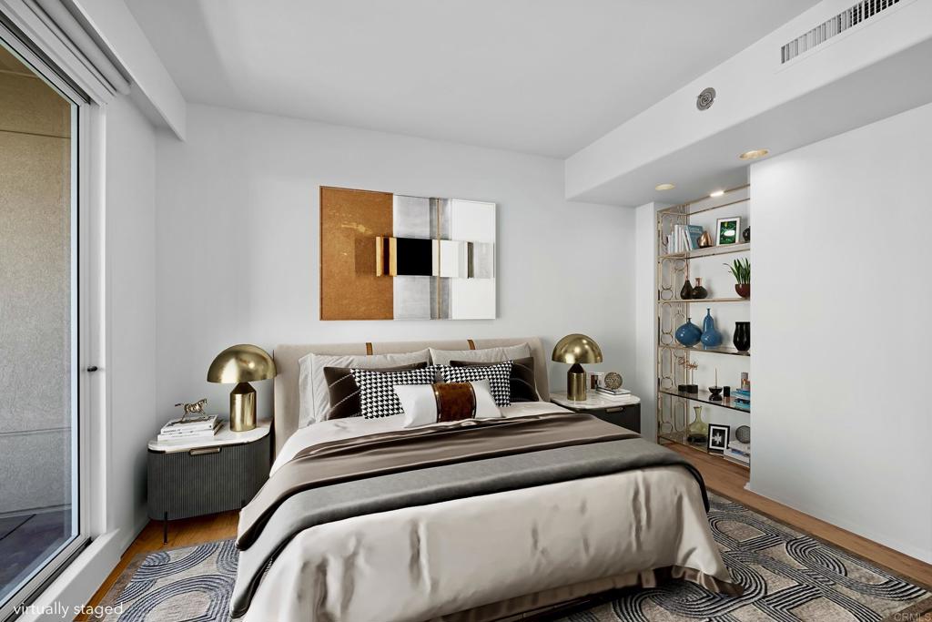 Located in the luxurious 62+ Pacific Regent La Jolla independent living community, this bright, newly-updated, move-in ready, 2-bed 2-bath 1200 sqft condominium is West-facing with a private balcony and city, coastal hills and Pacific Ocean sunset views. With a spacious open layout and wall of window views, the unit is filled with natural light. It is equipped with central AC & Heating, real-wood entry & guest bedroom/study flooring, new quartz kitchen & primary-bath counter-tops, new kitchen & bath sinks and faucets, new carpeting, stackable washer & dryer, numerous storage closets, elegant window shades and freshly painted through-out. Perfectly located in one of San Diego’s most desirable neighborhoods, Pacific Regent La Jolla is just minutes from the UCSD medical campus, UTC shopping center, the Blue trolley line, beautiful La Jolla beaches and quick access to the I-805 and I-5 Freeways. Home to 148 condominiums, Pacific Regent high-rise offers a comfortable living environment for its residents. Upscale amenities include: 24/7 concierge and security services, weekly 1-hr housekeeping service, on-site gourmet restaurant, heated indoor pool & spa, fitness center, daily exercise classes, quiet library, beauty salon, outdoor lounge area and 3 residential elevators. Pacific Regent offers a full activity calendar each day, featuring a variety of engaging activities and outings, designed to please a wide range of tastes and preferences. These include numerous book clubs and lectures, walks on the beach, trips to Balboa Park, daily movie nights and happy hours. Residents have access to a residents-only garage parking with EV-charging stations and complimentary valet parking for both residents and guests. Scheduled transportation by car or bus is available for those who prefer not to drive, making it convenient to reach medical facilities, local markets, stores, and attractions. Monthly HOA dues in this well-maintained complex cover all utilities, water, trash pick up, high speed internet & cable TV, landline phone service, exterior and common grounds maintenance, transportation, and a minimum of 10 dining room meal credits per occupant.