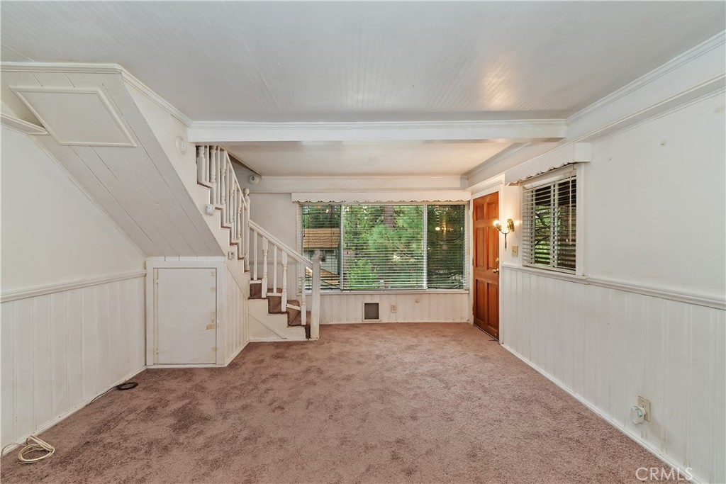 THE PRICE IS RIGHT! Affordable 2-bedroom, one full bath cottage-style home, including a separate bonus or 3rd bedroom with a three-quarter bath in the lower level. Features include new carpet, a beautiful rock fireplace, washer hook-ups, and a spacious rear deck. So, when you add it all up, including the bonus area, you have a 3-bedroom, 2-bathroom home with approximately 900 square feet on a wooded, 5,214-square-foot lot in a quiet neighborhood of Fawnskin for less than $300 per square foot.