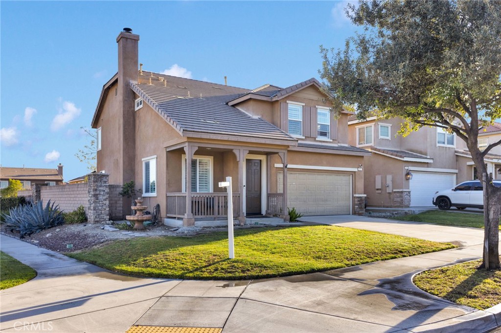 Welcome to 3925 Obsidian Rd in the highly desirable Rosena Ranch community! This thoughtfully designed home offers 2,272 sqft of spacious living with 4-bedroom, 3-bathroom, with downstairs bonus room/office! Built in 2009 and situated on a 5,511 sq ft corner lot, this home features an open-concept layout ideal for both everyday living and entertaining. The main level showcases wood-look tile flooring, plantation shutters throughout, recessed lighting, and a welcoming living area with fireplace. The upgraded kitchen offers white cabinetry, sleek countertops, stainless steel appliances, double ovens, a gas cooktop, and a large center island with bar seating. A downstairs bedroom and full bathroom provide flexibility for guests or multigenerational living, while the additional downstairs bonus room is perfect for a home office, gym, or playroom. Upstairs features a spacious loft ideal for a second living area, along with generously sized secondary bedrooms. The oversized primary suite includes a private sitting area, dual vanities, soaking tub, separate shower, and walk-in closet. The upstairs laundry room includes built-in cabinetry for added convenience. Step outside to an entertainer’s backyard complete with a full-length covered patio, string lighting, pergola lounge area, multiple seating spaces, and scenic mountain views — perfect for outdoor dining and relaxing evenings. Located within Rosena Ranch, residents enjoy resort-style HOA amenities including a pool, spa, fitness center, clubhouse, parks, and walking trails. With easy access to the freeway and a short drive away from the mountains, entertainment, restaurants, and more, this move-in-ready home offers space, functionality, and lifestyle all in one.
