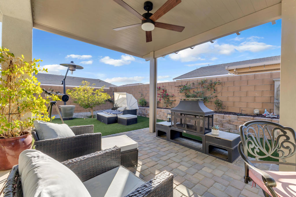 Welcome to this beautifully handcrafted home featuring upgrades throughout and a true garden oasis in the heart of the desert. Offered fully furnished–everything you see stays; along with FULLY PAID SOLAR for enhanced efficiency and long-term savings, a NEW WHOLE-HOME WATER SOFTENING SYSTEM, and a spotless-water garage faucet ideal for vehicle care without residue. Step inside through an expansive entryway that flows into a formal dining room ideal for gatherings. The chef’s kitchen serves as the centerpiece of the home, showcasing a large statement island, upgraded countertops, custom cabinetry, and a designer backsplash–all opening gracefully to the family room for effortless hosting and everyday luxury. Upgraded flooring enhances the home’s cohesive and sophisticated look.The private primary suite is thoughtfully separated from the guest bedrooms and features a generous walk-in closet, spa-inspired bath, and direct access to the outdoor living space.Step outside to a fully reimagined backyard sanctuary, featuring a curated garden side yard with rich, fertile soil ready for cultivation. The property includes nine fruit trees–orange, lime, olive, mango, tangerine, and lemon–along with raspberry and blackberry bushes, productive grapevines, and thriving greens. Six custom planting containers offer additional flexibility for personalized gardening.This home has been meticulously cared for and reflects true pride of ownership. Homes offering this level of quality, craftsmanship, and thoughtful renovation are rarely available–an exceptional opportunity.