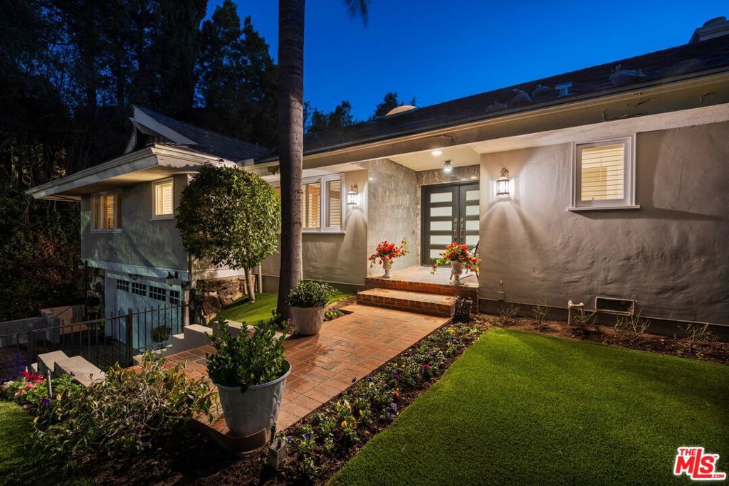 Incredible single level view property in a blue chip Royal Oaks location. Move-in, upgrade or build new in one of the most desirable pockets of Los Angeles. Clean kitchen with island and breakfast nook. Big family room and bar area with French doors which open to the pool and deck. Spacious primary suite with sitting area and views. Large second bedroom suite has remodeled Carrara marble bathroom. Enjoy summer bbqs all year long and entertain your family and friends by the pool. Pool storage shed with half bath. Watch the glorious pink skies sunsets and settle into the city lights views when the sun sinks West and disappears over the canyon and into the Pacific. 5th bedroom is a gym and accessed only via the 4th bedroom. PLEASE SUBMIT OFFERS BY THURSDAY JAN 30 BY 9:30AM IF POSSIBLE.