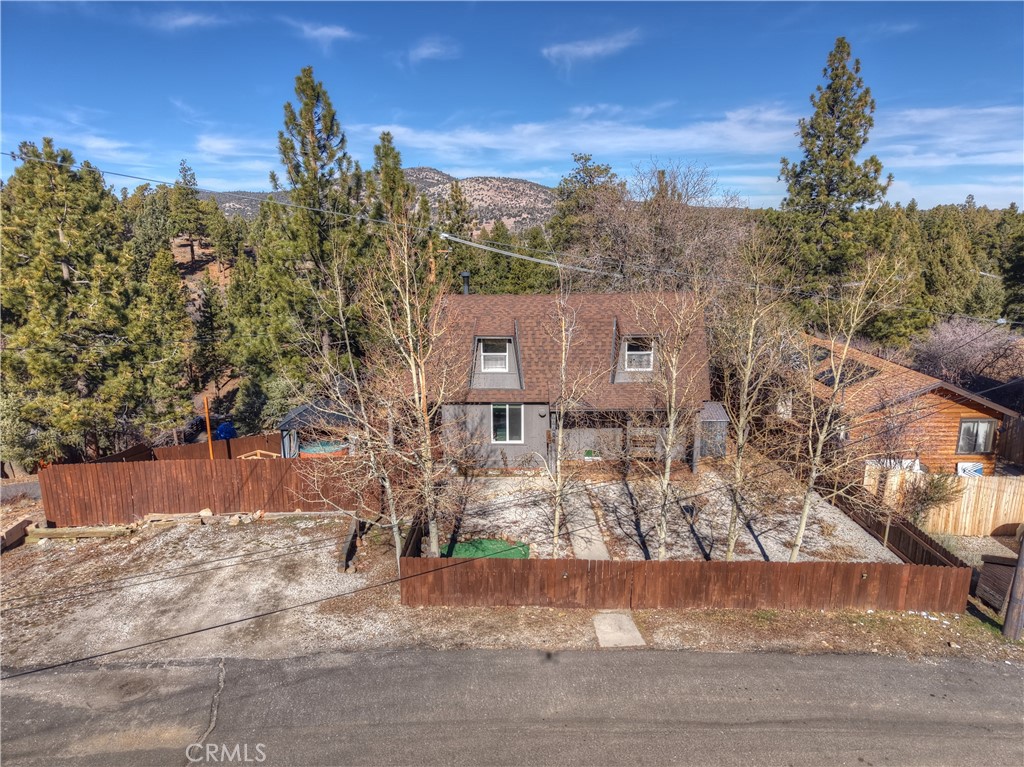 This mountain home is beautiful inside and out! The main floor living space is open and bright, with high ceilings and accent beams. You get gorgeous views from all the windows and 2 large sliders, which are all newer for maximum energy efficiency. The living room also features a warm and cozy wood burning, stone fireplace. The kitchen is equipped with newer stainless steal appliances, as well as an oversized sink and full size stacked washer and dryer. Concrete countertops add a modern element, along with the updated light fixtures. The full downstairs bath has a large clawfoot tub for a nice, relaxing soak, and a shower as well. Upstairs the high ceilings and beautiful mountain views continue, in the 2 spacious bedrooms. There is also a half bath upstairs. Outside there is a wraparound deck with bar seating and the entire lot is fenced in. This home is situated on a corner lot and comes with an additional parcel, totaling 8300 sqft. It’s all usable and fenced in. There is also a new spa and gazebo, and a firepit with more seating. There is ample parking and it is all level and south facing! This home was completely redone in the last few years, even the roof was done in 2023. This home would make a great full time, vacation home or short term rental.