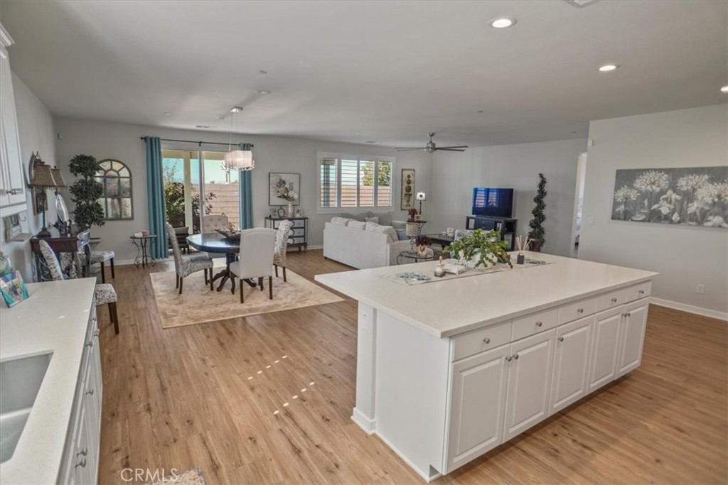 Stunning Single-Story Home with 30 Paid Solar Panels! This immaculate residence shows better than a model home and offers exceptional comfort and energy savings. Step inside to find luxury laminate flooring throughout the main living areas and plush carpeting in all bedrooms. The gourmet kitchen features elegant quartz countertops, a massive center island, a stainless steel 5-burner range, dishwasher, and microwave—perfect for cooking and entertaining. The open-concept floor plan is enhanced by wide hallways and a spacious family room, ideal for gatherings. Every bedroom includes a walk-in closet, and the home is packed with premium upgrades such as a tankless water heater, upgraded molding, plantation shutters, modern ceiling fans, designer light fixtures, and warm earth-tone colors. Step outside to a beautifully landscaped backyard with a large patio slab and covered patio, offering the perfect outdoor living space. With 30 owned solar panels, this home is not only beautiful but smart—delivering monthly cost savings and efficiency. This is a true turnkey home—elegant, energy-efficient, and ready to impress.