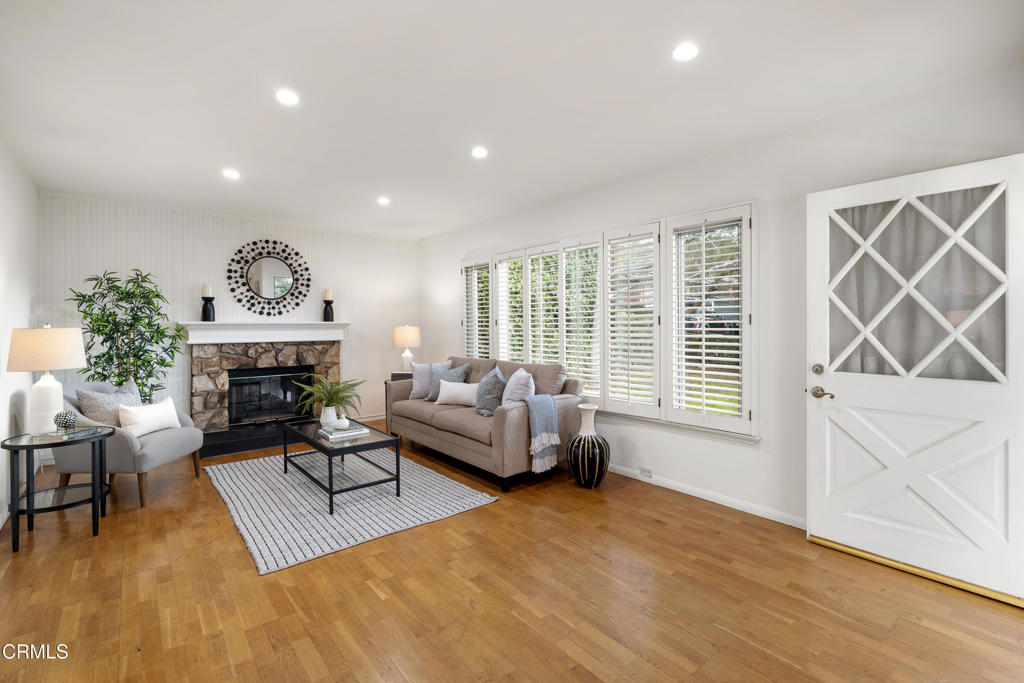 Welcome to this delightful home located in the sought-after Sagebrush community of La Canada Flintridge. This property offers a blend of original charm and modern convenience, set in a tranquil neighborhood with access to top-rated schools. As you enter through the front door, you are greeted by the warm ambiance of the living room, featuring hardwood flooring, wood-louvered shutters, recessed lighting, and a gas fireplace with a tiled hearth, stone surround, and a classic wood mantel. The living room flows seamlessly into the dining room, which is adorned with a lighted ceiling fan and wood-louvered shutters, creating a cozy and inviting space for meals. The adjacent kitchen boasts hardwood flooring, tiled countertops, a gas stove, refrigerator, and dishwasher. A back door provides easy access to the detached finished two-car garage and the backyard area, perfect for outdoor gatherings and relaxation. From the living room, a hallway leads to two well-sized bedrooms, one and a half bathrooms, and a convenient laundry room. The first bedroom offers ample closet space, wood-louvered shutters, and hardwood flooring. The second bedroom, situated at the end of the hall, is spacious and features a sliding door that opens to a back deck and the backyard, creating a private retreat. The laundry room includes a washer and dryer and connects to a half bathroom with a pedestal sink. The detached, finished garage offers more than just parking–it serves as a versatile bonus space currently used for entertaining and as a workout area. Its deeper-than-average size provides ample room for various activities and storage. With its excellent location, charming features, and access to highly rated schools, this home is a must-see. Don’t miss the opportunity to make this lovely property your own!