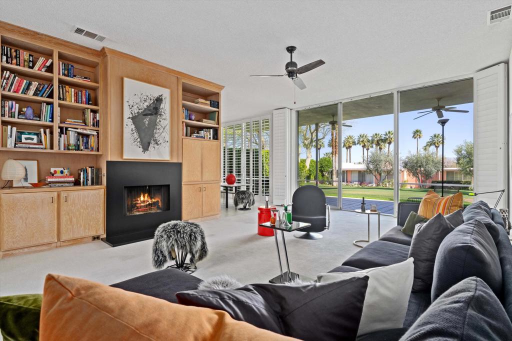 Nestled in the heart of the iconic Marrakesh Country Club and overlooking the lush 3rd fairway, this spacious B-plan home embodies the timeless elegance of Hollywood Regency architecture, originally designed by John Elgin Woolf, known for introducing a new style of luxury in Hollywood in the 1950s and 1960s. Woolf’s signature touches are evident throughout the home’s design, from the dramatic double-door entry to the clean lines and timeless details. A gated courtyard welcomes you offering the perfect setting for seamless indoor-outdoor California living and entertaining. With HOA approval, the front courtyard may be expanded to accommodate an additional room or a private pool, enhancing the home’s potential. Inside, the grand living space features soaring ceilings, a stately fireplace with custom built-ins, and floor-to-ceiling glass walls that flood the interiors with natural light and frame golf course views. The adjoining dining area is highlighted by a custom picture window, while the kitchen and two large bedroom suites with atrium-style bathrooms feature the highly sought-after original Marrakesh cabinetry – a hallmark of Woolf’s refined aesthetic. A versatile third bedroom offers the perfect space for guests or extended family. Upgraded with a NEW SPRAY FOAM ROOF COATING (May 2025) with 5-year warranty and EV CHARGER IN THE GARAGE – valuable enhancements that make this home a standout. Positioned just steps from the community pool, spa, and guest parking, this home combines architectural significance with unmatched convenience. Marrakesh, with only 364 homes, is renowned for its Hollywood Regency style and welcoming atmosphere. Residents enjoy access to golf, tennis, pickleball, a fitness center, and a newly remodeled clubhouse with spectacular San Jacinto Mountain views. Ideally situated in the finest area of Palm Desert, it’s just minutes from the luxury shopping, fine dining, and art galleries of El Paseo Drive. This is an extraordinary opportunity for a buyer seeking to restore a piece of architectural history or enhance it with modern touches.