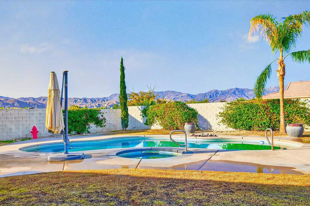 Annual lease. A luxury home on a cul-de-sac near Eisenhower Medical Center. This 3789 Sq Ft home has 4 bedrooms 3.5 baths and sits on a huge lot with mountain views. Located in the IID lower utility cost district. Beautiful double door glass entry. Spacious open floor plan. The island kitchen has a gas cook top, granite countertops, double ovens, breakfast bar. The primary bedroom suite has a fireplace and a retreat with built-in bookcase. The over-sized back yard has covered patio, fire pit, built-in BBQ and custom saltwater pool & spa. 3-car garage. Basic tv cable, HOA fees, pool + landscape service are included. Tenants pay utilities + screening fee. Owner will consider Seasonal Vacation rental terms at $11,000mo. *Professional photos coming after refrigerator is installed and bed is installed in guest bedroom. Contact agent to schedule your personal showing