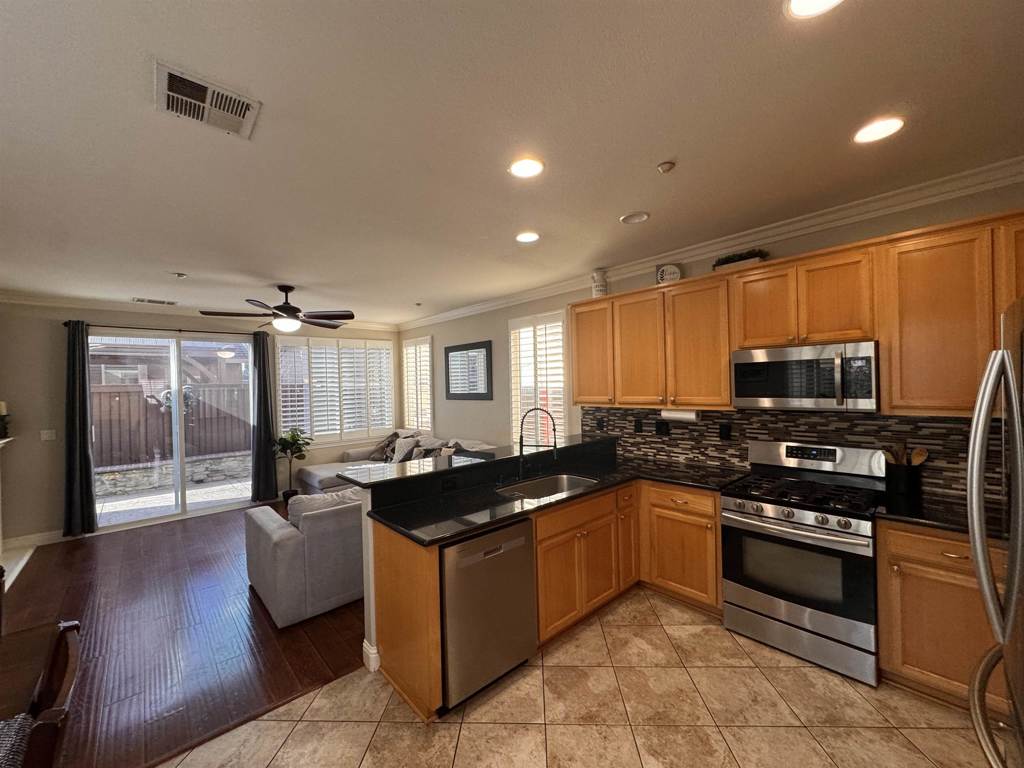Welcome to 511 Arrowhead Street, a beautifully maintained and upgraded, two-story home in a desirable Brentwood neighborhood with inviting curb appeal, palm trees, manicured landscaping, and a charming covered front porch. Inside, crown molding, and plantation shutters create a warm and elegant feel throughout the main level. The spacious living and dining areas offer comfortable gathering spaces. The kitchen features granite countertops, stainless steel appliances, ample cabinetry, and a breakfast island/nook area. Sliding glass doors open to a private backyard patio. A convenient half bath is located downstairs. Upstairs you’ll find all bedrooms, well-appointed bathrooms, and a dedicated laundry room for added convenience. Additional highlights include recessed lighting, ceiling fans, a two-car garage, and some tinted windows and sliding glass doors for sun control and energy efficiency. Move-in ready and ideally located near parks, schools, shopping, and commuter routes.