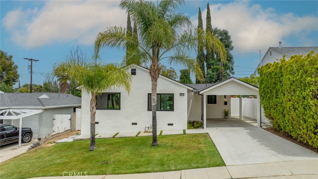 PRICE IMPROVEMENT! Situated in one of the most coveted South of the Boulevard neighborhoods, this impeccably updated 3-bedroom, 2-bath single-story residence offers timeless charm with a fresh, modern elegance. Every detail has been thoughtfully curated to deliver comfort, elegance, and refined living in an unbeatable location. The curb appeal welcomes you with lush green landscaping, tall palm trees, beautiful flowers, and a beautifully maintained front lawn. A newly installed presidential roof, double-paned windows, fresh paint, and updated exterior doors enhance both the look and modern style of the home. Step through the front door into a bright, open-concept living space offering wood flooring, recessed lighting, oversized sliding glass doors and floor-to-ceiling windows bring in abundant natural light and views of the backyard. The living room flows effortlessly into the dining area and kitchen, promoting easy entertaining comfort. The modern and open concept kitchen is a showstopper—featuring quartz countertops, soft-close custom cabinetry, a peninsula with breakfast bar seating, stainless steel appliances, a large window above the sink, and a walk-in pantry with an integrated laundry area. It’s both beautiful and highly functional for the modern lifestyle. The primary suite serves as a private retreat, complete with tranquil views of the lush treelined backyard and a beautifully finished ensuite with modern bathroom. The walk-in shower with sleek glass doors and contemporary tilework adds a luxurious touch. Two additional well-sized bedrooms, tucked off a private hallway, offer generous closet space and flexibility. The hallway bathroom is equally breathtaking, featuring a glass-enclosed tub and modern finishes. Outdoors, the ultimate private backyard is a serene escape— landscaped with lush greenery, mature fruit trees, and a spacious patio. Whether relaxing or entertaining, this space offers a seamless indoor-outdoor experience designed for year-round enjoyment. Backyard spacious enough to add a beautiful pool. To complete the home’s thoughtful features, a well-lit carport with modern lighting as well as recessed lighting adds both convenience and elegance. Located just minutes from Ventura Boulevard, you’ll enjoy quick access to award-winning schools, premier shopping, fine dining, and entertainment. This beautifully updated home offers the perfect blend of luxury, charm, a rare find in today’s market. Photos & pool are virtually staged.