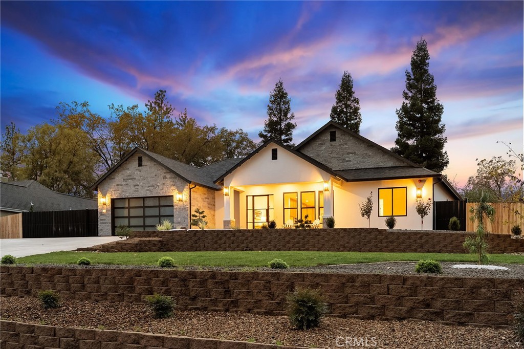 As you arrive at this newly built home with owned solar, the first thing you’ll notice is its serene setting—perched above Dry Creek Canyon with peaceful views of mature trees that frame the landscape. The approach to the home is impressive, with a wide concrete driveway offering generous parking, including dedicated RV access, and a beautifully designed front yard. Carefully crafted retaining walls define each landscape element—lush lawn, decorative rock beds, shrubs, and architectural plantings—creating a clean, modern curb appeal that complements the home’s striking façade. A large glass entry door welcomes you inside, where the open-concept design immediately expands before you. The kitchen, dining, and living areas blend seamlessly, filled with natural light from the expansive windows overlooking the backyard. The chef’s kitchen is both stylish and highly functional, centered around a substantial island perfect for gathering. Warm wood cabinetry pairs beautifully with modern neutral wall tones, while premium appliances include a double oven—one doubling as a microwave—a sleek cooktop with a pot filler, and a farmhouse sink positioned perfectly beneath a window with views of the pool and landscaped yard. Just off the main living area, the primary suite provides a peaceful retreat. The large bedroom offers privacy and comfort, while the luxurious en-suite bath features a standalone soaking tub, a glass-enclosed shower, and dual sinks—all finished in a fresh, modern aesthetic. Stepping into the backyard, you’ll find a fully landscaped oasis designed for relaxation and entertaining. Thoughtful plantings, clean hardscape, and an inviting pool create a private outdoor environment ideal for enjoying warm evenings or hosting gatherings. This is a rare opportunity to own a brand-new custom home thoughtfully placed among nature, featuring modern amenities, timeless design, and an exceptional indoor-outdoor living experience.