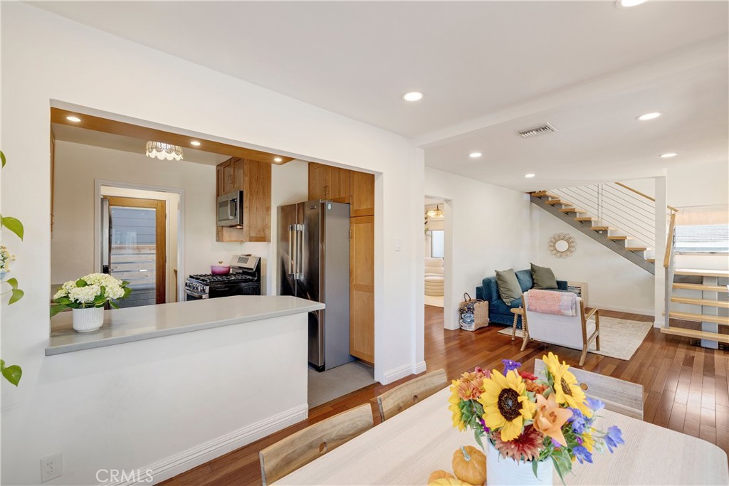 A rare opportunity in the exclusive South End Sand Section of Manhattan Beach, this beautifully remodeled beach house blends timeless charm with thoughtful modern updates. The 3 bedroom plus 2 bathroom home is nicely situated on a corner lot overlooking the scenic greenbelt. The remodeled kitchen includes stainless-steel appliances, Corian countertops, a mosaic tile backsplash, pantry space, and a breakfast bar that opens to a spacious patio perfect for dining al fresco. Recent enhancements include central air conditioning, new oven/range and microwave, upgraded lighting and electrical throughout, new window treatments, a smart thermostat, and a digital lock for keyless entry and more. Outside, the landscaping is refreshed with new roses, a drip irrigation system, and a freshly painted and sealed side yard ideal for entertaining. Plenty of storage area in the attic + crawl space and pantry/laundry area off kitchen. Just a short stroll to the beach, MB pier, top-rated schools, and vibrant downtown shops and restaurants. This turnkey coastal gem perfectly combines classic beachside charm, modern comfort, and an unbeatable location.