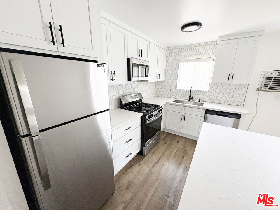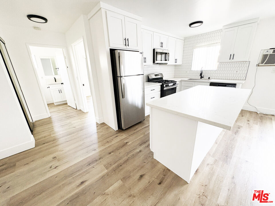 FULLY RENOVATED 1 Bedroom, 1 Bathroom Apartment, top floor with a balcony and tons of light. Gated parking/ secure building. Large apartment with the a spacious bedroom – fully renovated kitchen, quartz countertops and stainless appliances. Massive kitchen island with a quartz countertop. The bedroom has a small balcony. Apartment complex has undergone extensive renovations. Very bright, lots of windows. Excellent Hollywood location near Silver Lake, Los Feliz, West Hollywood, Koreatown, the 101 for easy access to Downtown LA and more. ** One Month Free – advertised rent is the blended average of the first year with one month free**. There is a $45/mo utilities reimbursement charge.