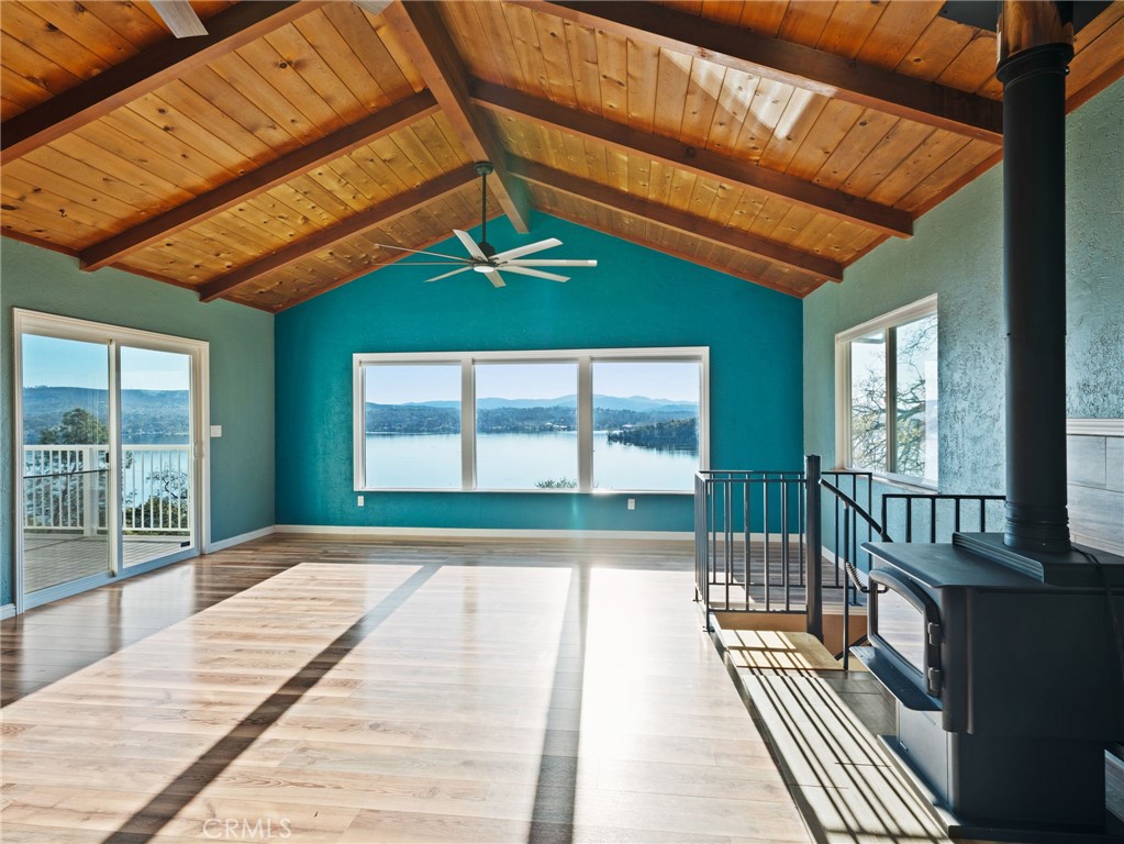 Sunrise Shores Cabin Retreat. Picture yourself watching the Sunrise from the living room on brisk mornings from the picturesque windows or from your back deck on our perfect summer evenings, taking in the beauty of Clear Lake and all that it offers. This immaculate cabin-style home is filled with character and its location allows for a life filled with nature’s experiences. Walking in you’re greeted with natural light and beamed ceilings. A wood stove for cozy heat on cooler nights. Open floor plan to the kitchen and dining area, a spiral staircase leads you down to the bonus room. Down the hall is a beautifully remodeled bathroom with a walk-in tile shower and a dual sink vanity. On the main level is the also the Primary Bedroom with beamed ceilings to match the living room and again the same picturesque view of Clear Lake. On the lower level is the bonus room, laundry area and 2nd full bathroom. This home is located in the Sunrise Shores Community. It offers lake access through a parking area and boat ramp.