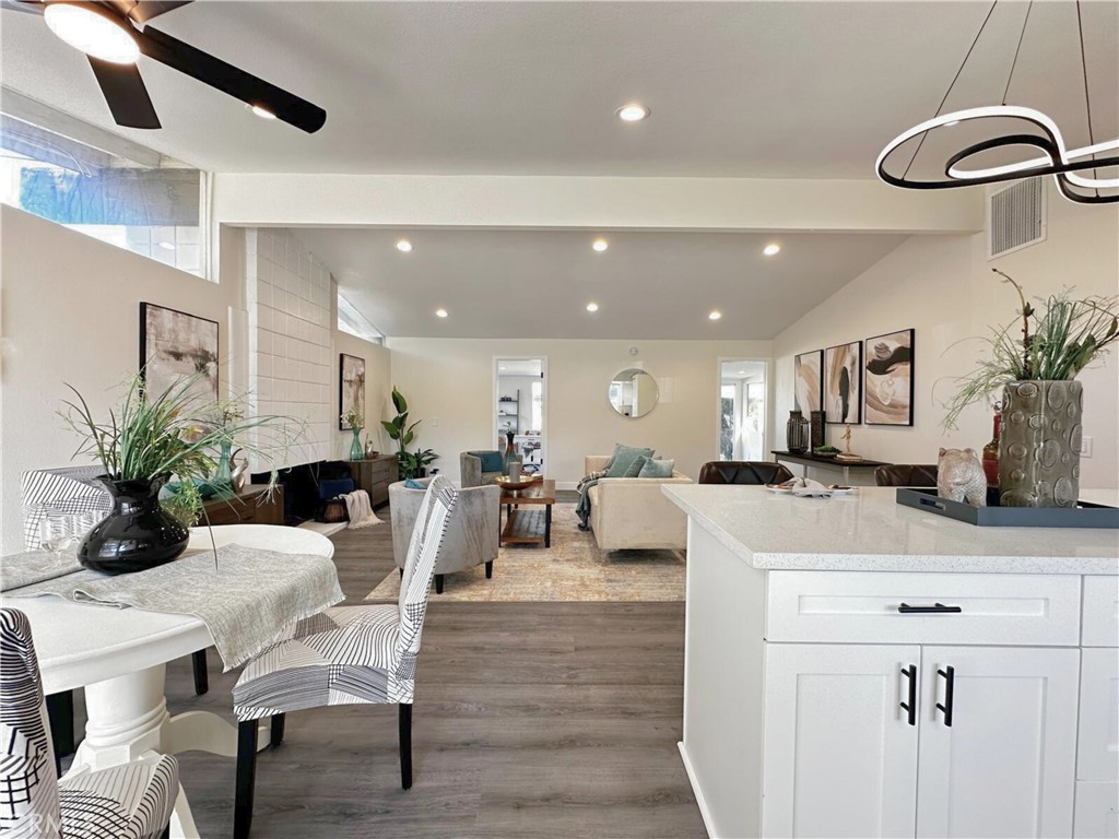 Welcome to this stunning home in Country Club Terrace. Enjoy an open-concept layout with brand-new flooring, a renovated kitchen, and updated bathrooms. The chef’s kitchen features sleek cabinets, new appliances, and a versatile island. The spacious living room, with a wood-burning fireplace and formal dining area, is perfect for gatherings. Nearby, a private den and a bedroom with sliding doors offer access to the backyard and community pool. A hallway includes a stackable washer/dryer, a modern bathroom, and a second bedroom with ample closet space. The primary bedroom has high ceilings, large closets, and a bonus room. Its bathroom features dual sinks, a tub with a shower, and a separate shower room. Community amenities include a barbecue area and swimming pool. Located just a block from Hawk’s Landing Golf Course and Yucca Valley attractions!
