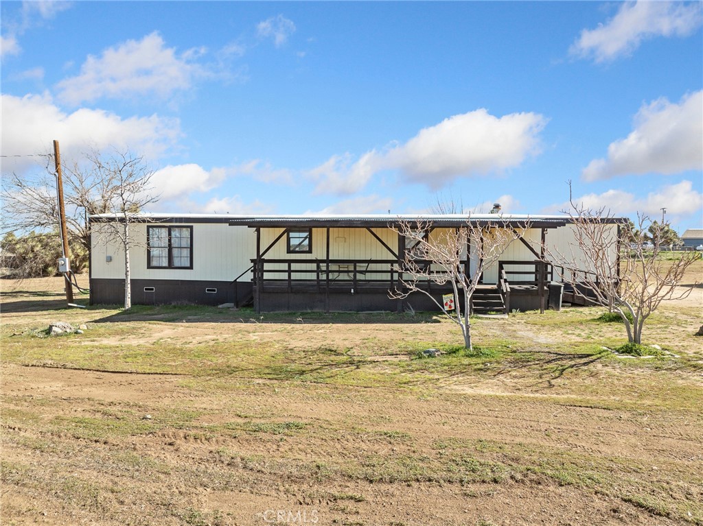 Cute and cozy 2 bedroom 2 bath manufactured home sitting on a spacious 2.07 +/- acre lot with a gigantic 4 car detached frame built garage. This property will charm you immediately with its large covered front porch to enjoy the desert and mountain views. The home is straight forward in that you enter into the living room which leads to the kitchen and dining area. The home has a split floor plan with the primary bedroom and bath on one side of the home and the other bedroom and hall bath located on the other. The home has been well cared for over the years and is move in ready. The detached garage has 1,125 square feet of garage space and is the perfect spot to store vehicles, toys, or have a great shop in. This home is on a permanent foundation and qualifies for FHA, VA, USDA, and other available financing. Both the front and back access to the home have ramp access to the entry doors making the home wheel chair accessible. The property is close to paved Wilson Ranch Rd and has easy access to schools, downtown, and highway for commuting purposes. This property is zoned for horses and located in the Snow Line School District.