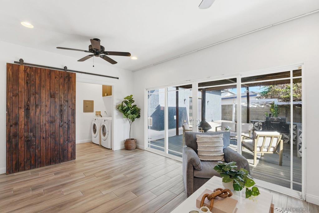 Discover this stunning 2 bedroom, 2 bath San Diego home featuring a versatile optional third bedroom perfect for modern living. An entertainer’s dream awaits outdoors with a fenced grassy yard and a separate patio complete with a built-in fireplace and outdoor kitchen. A detached garage provides an incredible bonus space, ideal for a home office, gym, or extensive storage. Inside, updated matching solid flooring flows throughout the home, complemented by stylish space-saving barn doors and a convenient indoor laundry room. This property offers an exceptional location, situated moments from the University of San Diego and the Francis Parker School. Seize the opportunity to own this turnkey home that perfectly blends modern amenities with Southern California’s indoor-outdoor lifestyle.
