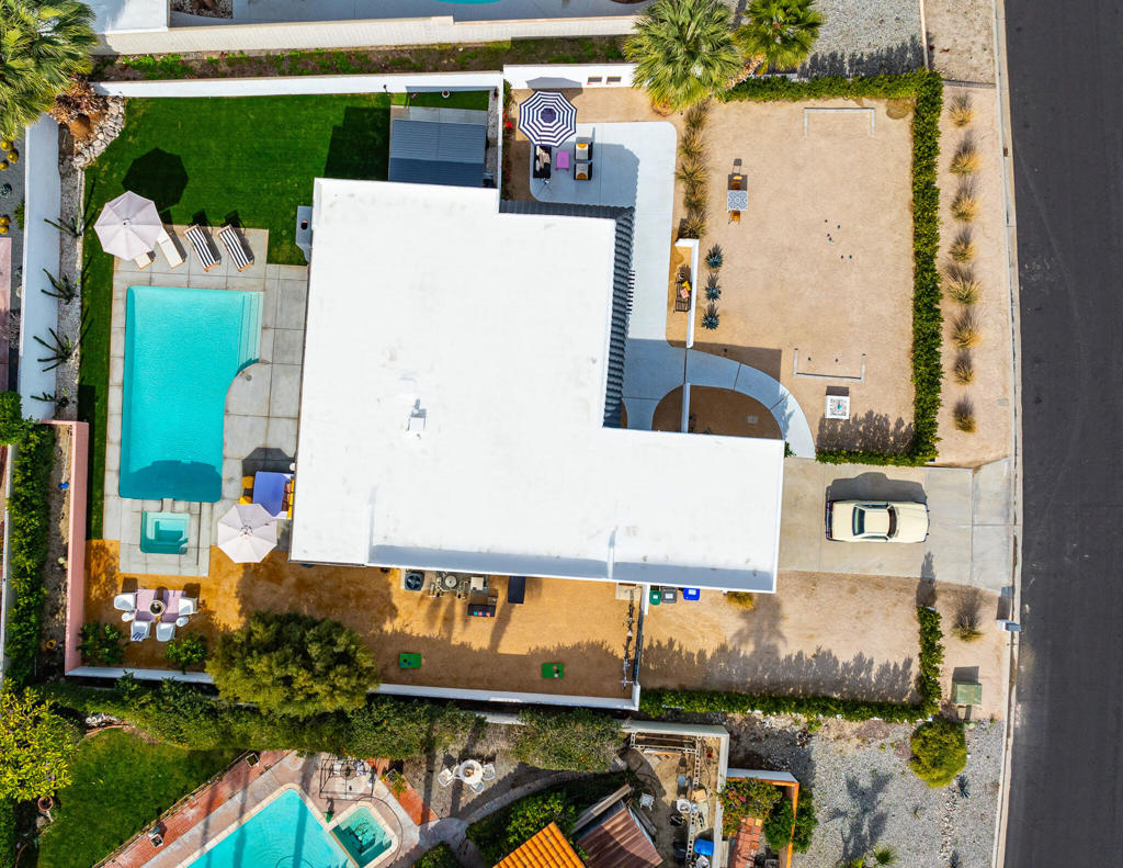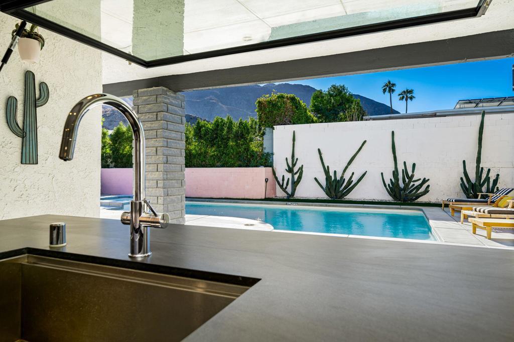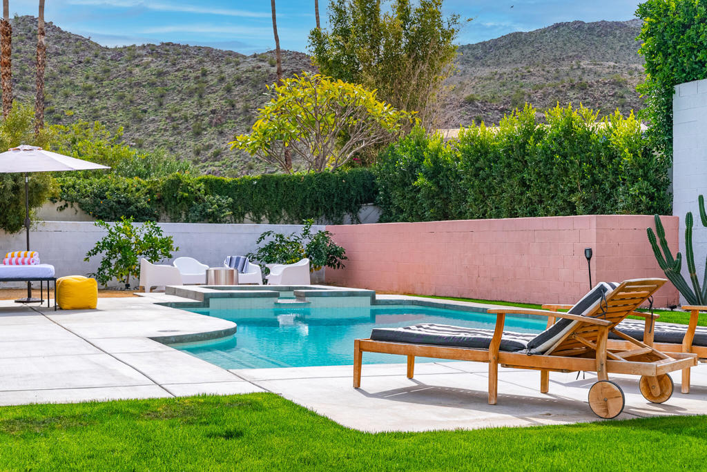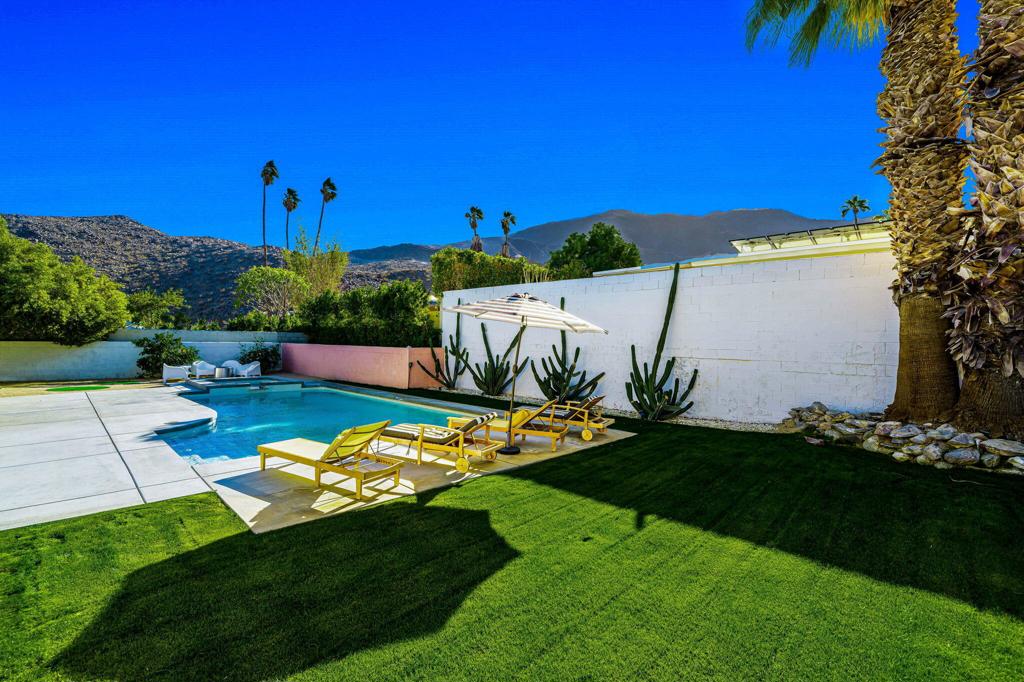 Situated in Rancho Mirage’s picturesque, elevated Magnesia Falls Cove neighborhood, this home has been remodeled ”down to the studs” and offers incredible mountain views. Enter to a light and bright interior with smooth drywall throughout. To the right of the entry there is a step-down living room, perfect for entertaining friends and family. The open concept kitchen showcases stainless appliances, plenty of storage, a large island with seating and an oversized ”margarita window” for a seamless flow to the backyard and a striking mountain view. The generously sized backyard houses a huge sparking pool and spa, which had also been totally re-imagined and vastly improved during the recent renovation. The tranquil primary bedroom boasts pool access and an en-suite bath, also with great views. Two guest rooms offer plenty of room for visiting guests and / or an in-home office. All of the work done to this home was completed in 2022-2023, which included everything from electrical, plumbing, flooring, windows, doors and more. Other highlights include: 2-car garage, large laundry room with beverage cooler and deep freezer, multiple patio areas, bocce ball court in the private, giant front yard, and no HOA!