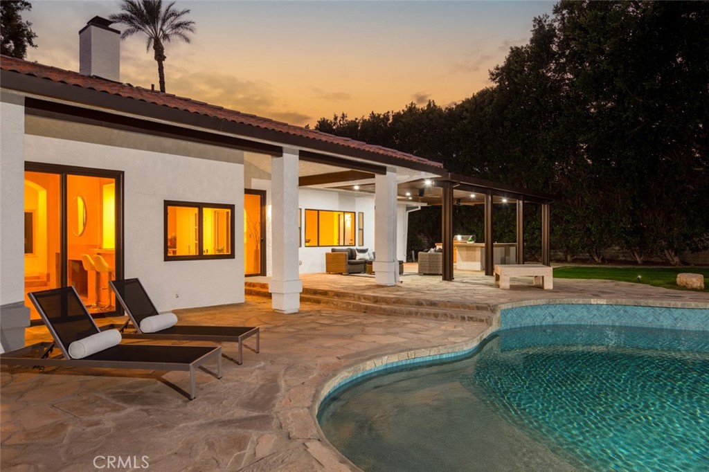 Rancho Mirage living, elevated. Set across a rare half-acre, this residence blends timeless materials, grand interior scale, and a resort-caliber backyard designed for gathering and retreat. With mature palms, long sightlines, and a setting that feels expansive from the moment you arrive, the property offers a sense of space and privacy that’s increasingly hard to find in the desert. The home is designed to live outward, grounded in openness, proportion, and ease. Inside, the layout unfolds as a true retreat. Massive bedrooms are thoughtfully placed throughout the single-level floorplan, each one feeling more like a private suite than a standard room. Travertine floors run throughout, giving the interiors a natural warmth and timeless simplicity. An updated kitchen sits at the heart of the home, refined yet functional, designed to support both everyday living and effortless entertaining. The architecture remains clean and composed, with tall ceilings, soft transitions, and an openness that allows light to move through the home from morning into evening. The main living areas connect effortlessly outdoors, with wide glass doors opening onto an oversized backyard built for desert living. A resort-style pool anchors the setting, framed by stone hardscape and lush greenery, while the outdoor kitchen creates a natural place to gather, from afternoons in the sun to evenings under the patio lights. What makes the residence even more compelling is the level of care behind the scenes. Major upgrades have already been completed, including a new HVAC system, new water heater, updated piping, and new pool equipment, bringing modern reliability to a property that already feels established and enduring. Positioned in one of Rancho Mirage’s most sought-after pockets, the home offers more than privacy and scale it places you at the center of the desert’s most vibrant lifestyle. Just minutes away, The River at Rancho Mirage anchors the area with open-air dining, boutique shopping, and an effortless sense of activity, from morning coffee runs to evenings spent at some of the Coachella Valley’s best restaurants. World-class golf, hiking, and resort amenities are always within reach, while the city’s rhythm remains refined, relaxed, and distinctly upscale. It’s a location that elevates daily living, blending retreat-like quiet with immediate access to everything that makes Rancho Mirage exceptional.