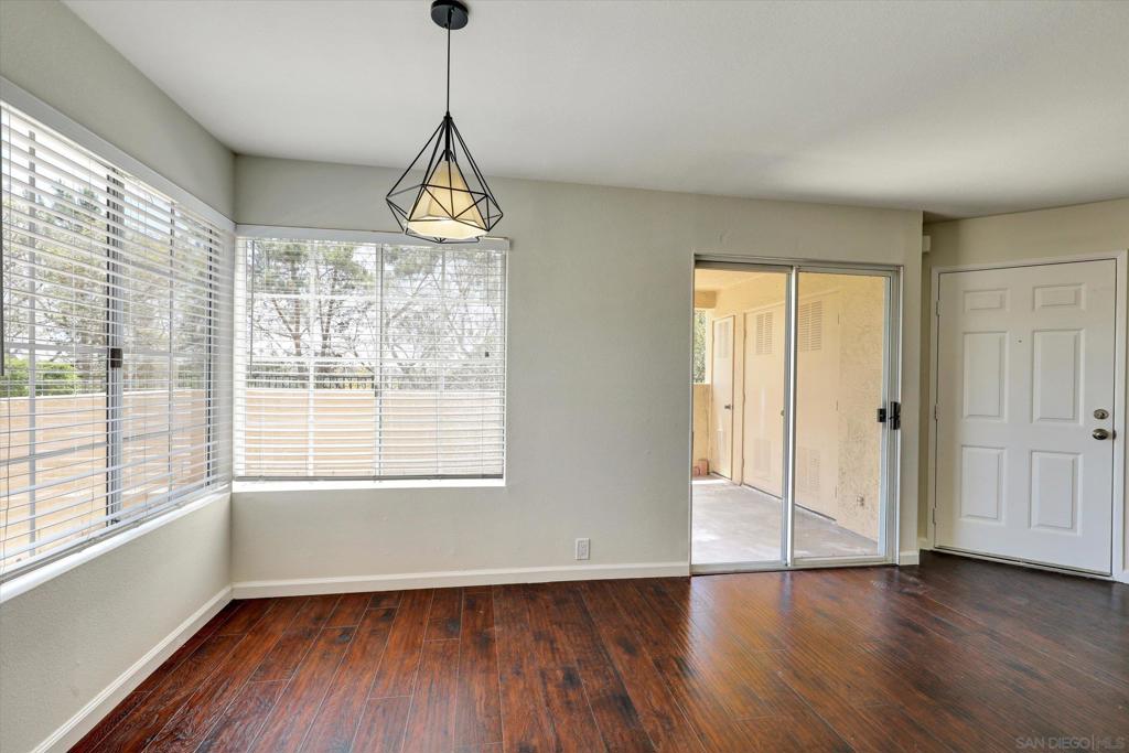 Move in ready! Beautiful, upgraded Canyon Park Villa 2 bedroom / 2 bathroom home available in the highly desirable Sorrento Valley area of Mira Mesa. This downstairs, end unit has views to the park and features wood flooring in the bedrooms and living areas, tile in the kitchen and bathrooms, fresh paint throughout, updated plumbing and light fixtures, outlets, light switches, door knobs, etc. Stay cool with the brand new AC unit (installed 5/1/2025), or warm yourself up to the cozy fireplace in the living room. A large patio area contains a laundry closet with a private washer/dryer combo. Entertain guests with the sparkling community pool and spa, playground and basketball court. Parking is 1 reserved covered space (carport) & 1 reserved space closest to home!