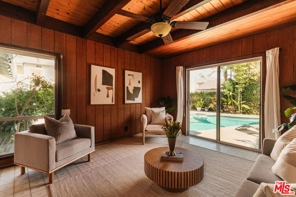 Nestled in the sought-after Burbank Hills, bright natural light fills every room of this well cared for Pool home, offering California living at its best. The home’s great floor plan lends multiple spacious living areas with a seamless indoor-outdoor flow. The eat-in Kitchen with KitchenAid Convection Oven & Microwave, Living Room with Fireplace, and Den with its own Bar are all a match made in hosting heaven! Past the roomy Formal Dining Area, french doors open wide to the patio where the scent of Lime blossoms fills the air. Two nicely sized Bedrooms on the main level are tucked away from the action past hallways with ample storage, while the Den/Family Room serves as the Third Bedroom if desired with its own pool entrance and a spacious full guest bath. The Fourth Grand Primary Suite with its Vaulted Wood Beam Ceilings, En Suite Bath, and private Deck lies above overlooking the tranquil hillside views. All the outdoor action centers around your shimmering pool surrounded by lush tropical landscaping, and alfresco Flagstone Dining Patio. Whether hosting friends or relaxing under the stars, this backyard is built for memorable moments. Some Notable Amenities & Upgrades: New 40 Year Roof (2021), New Water Heater (2024), Copper Plumbing, Refinished Oak Hardwood Floors, Foundation Retrofit, Newer Stacked Washer & Dryer, Wired for Fiber Internet Service and Security Shutters. The roomy Detached 2-Car Garage with workbench and built-in storage makes for the perfect weekend warrior hangout. All this and you’re so close to everything awesome Burbank, North Hollywood, and Glendale provide including beloved schools, incredible dining & entertainment along Downtown Burbank & Magnolia Park and all the major Studios are just minutes away. This 1952 gem blends quality craftsmanship and convenience in a perfect balance. Experience the charm, comfort, and easy elegance of Burbank living here, welcome home!