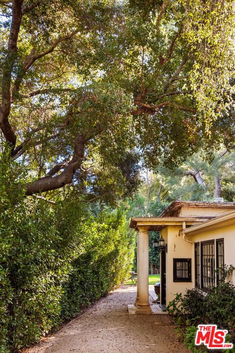 Tucked behind gates on Woodrow Wilson’s famed “Celebrity Row,” this private oasis evokes the charm of the French countryside. Quiet, serene, and surrounded by lush landscaping, the property features a beautifully designed main residence with two bedrooms and two bathrooms, plus a detached studio space.The kitchen boasts high ceilings, abundant natural light, and top-of-the-line appliances. Seamless indoor-outdoor living is on full display as the kitchen and dining area open directly to the backyard, complete with a pool, grassy lawn, and outdoor sauna.The primary suite is a true sanctuary, offering a built-in office nook, dual French doors opening to a tranquil courtyard with a fountain, a spacious walk-in closet, and a fully renovated spa-like bathroom. This hidden gem offers endless charm, privacy, and potential for expansion, all just minutes from the Sunset Strip, Hollywood, West Hollywood, Studio City, and more.