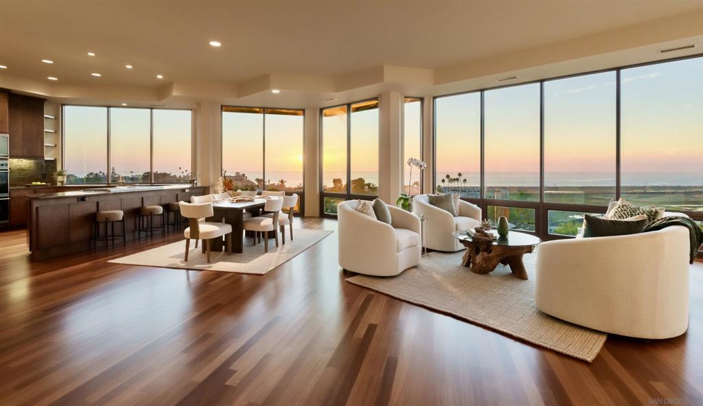 PRICE IMPROVEMENT! Seller will entertain offers between $7,895,000 and $8,495,000. Unrivaled PANORAMIC OCEAN and LAGOON VIEWS command attention from the moment you arrive—an ever-present backdrop that defines the soul of this extraordinary residence. A minimalist exterior conceals the visual drama inside, where a towering glass entry door unveils sweeping vistas that stretch to the horizon. Thoughtfully crafted to echo the natural landscape, warm stacked stone walls flow from the formal entry into the expansive great room, where walls of glass dissolve boundaries between indoor and outdoor living. Rich Brazilian cherrywood floors, rainforest green granite, and hand-engraved hardware add texture and warmth, grounding the home in timeless organic luxury. Designed with flexibility in mind, the layout offers two separate levels for a variety of lifestyles—from seamless single-level living to private, multigenerational spaces. The main floor includes the ocean-view primary suite with dual spa-like baths, a chef’s kitchen with Viking appliances, laundry room, and attached two-car garage. Downstairs, three bedrooms, a bonus room with second kitchen, and additional laundry hookups open to an outdoor entertaining area with built-in BBQ, fire pit, and room for a pool or pickleball court. Just minutes to the beach, freeway, top-rated schools, and the vibrant Cedros Design District—this rare coastal sanctuary offers breathtaking views, thoughtful design, and unmatched serenity.