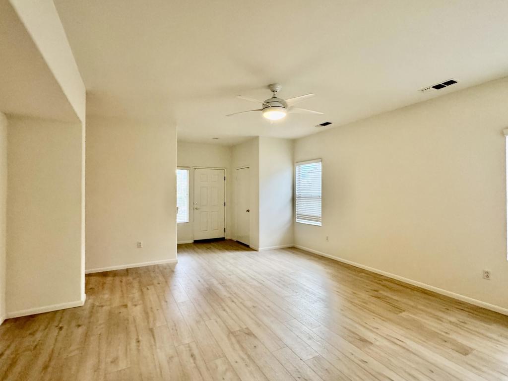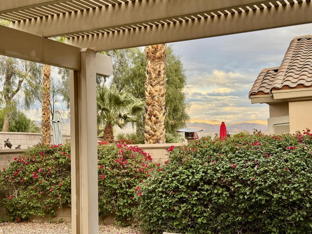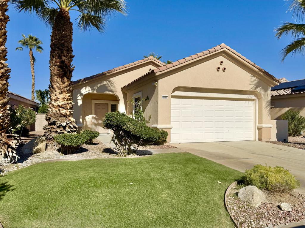 Located in the California Casual section of Sun City Palm Desert. This Pasadena model is freshly painted with new flooring and no carpet. There are 2 bedrooms and 2 bathrooms. The kitchen has a breakfast area with direct access to a private yard with grassy area and covered back patio. The homes in this section share their own pool and spa but are entitled to use all the other clubhouses and amenities in the complex. This area also has a direct cart entrance into the local shopping center parking lot and is close to convenient resident entrance gate. A great home for a single or couple.