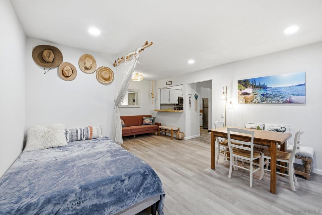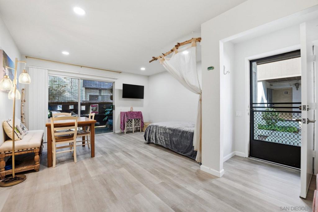 Welcome to this inviting ground-level studio tucked into the heart of Mission Valley. Designed for comfort and efficiency, the space features vinyl plank flooring, a functional kitchen, and a flexible living and sleeping area that feels open and easy to live in. Sliding glass doors lead to a private patio, offering a seamless indoor-outdoor feel and a quiet spot for morning coffee or evening downtime. Neutral finishes throughout make the home move-in ready while still leaving room to personalize. Residents enjoy access to two swimming pools, three laundry facilities, and a community clubhouse. Centrally located near shopping, dining, freeways, and public transit, this studio is a great fit for a first-time buyer, commuter, or investor looking for convenience, comfort, and location.