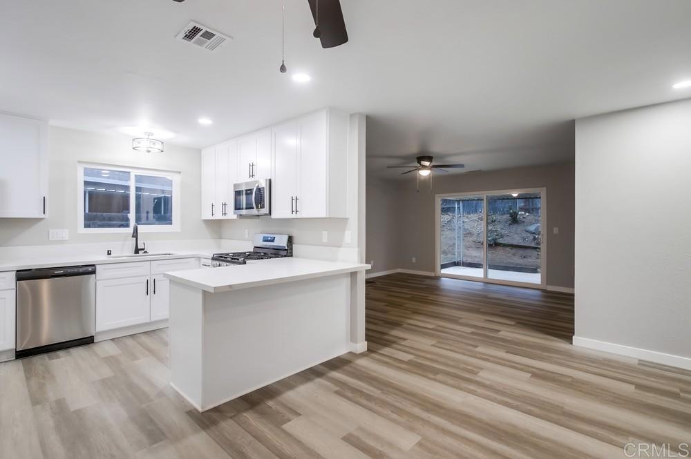 Completely Remodeled!!! Are you looking for the perfect home in El Cajon, CA? Look no further than this stunning 4 bedroom, 2 bathroom house located at 8043 ROYAL GARDENS COURT. This modern, single level floor plan home boasts 1257 square feet of living space and is packed with luxurious features that make it a true gem. RV parking and ample parking spaces with a double garage. Step inside and you’ll find a beautifully remodeled kitchen with quartz counters, gourmet appliances, and plenty of storage space. The open concept design is perfect for entertaining guests or simply enjoying a quiet night in with your family. The kitchen flows seamlessly into the dining area and living room with a fireplace, creating a warm and inviting atmosphere throughout the home. The bathrooms in this home are equally impressive, with a walk-in shower, separate tub, tile floors, and upgraded fixtures. You’ll feel like you’re at a spa every time you step into one of these beautifully remodeled spaces. Each of the 4 bedrooms in this home is freshly painted, new flooring and features large new windows that let in plenty of natural light. Whether you’re looking for a peaceful retreat at the end of a long day or a cozy spot to curl up with a good book, these bedrooms have everything you need. Outside, you’ll find a large yard, a covered patio, and plenty of shade. This outdoor space is perfect for enjoying the beautiful California weather year-round, whether you’re hosting a barbecue with friends or simply relaxing with a cup of coffee in the morning. Located near parks, public transportation, and with brand new double paned windows, this home offers the perfect blend of convenience and comfort. Don’t miss out on the opportunity to make this dream home yours – schedule a showing today and see for yourself everything that 8043 ROYAL GARDENS has to offer.