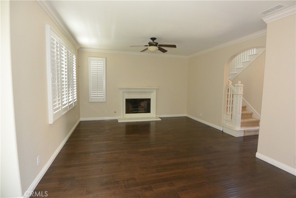 Stunning 3 bedroom 2.5 bath 2 story single family home in the beautiful Woodbury neighborhood of Irvine. This home has upgrades throughout including beautiful hardwood flooring; kitchen equipped with stainless steel appliances (gas stove, dishwasher, refrigerator and built-in microwave); center island great for entertaining guests. This beautiful home has a spacious living room with fireplace; great sized bedroom including a master with private bathroom spa tub with jets and dual sided mirror to the walk-in closet; upstairs laundry room; landscaped backyard with built-in BBQ; and 2 car attached garage. Amenities include: pool, clubhouse, tennis, volleyball and basketball courts.
