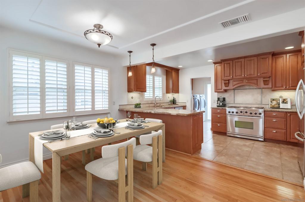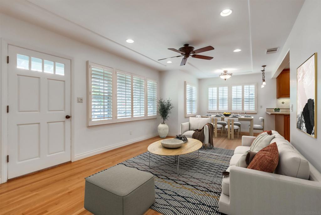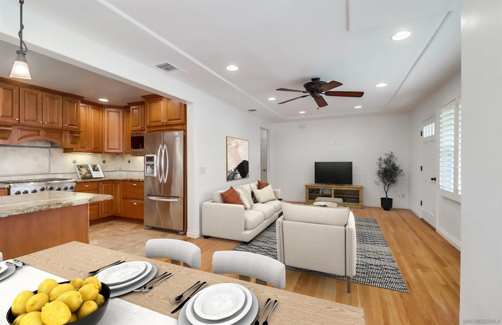 Move-in ready 3-bed, 2-bath home perfectly situated in one of La Mesa’s most walkable and family-friendly neighborhoods. Enjoy a bright and open floor plan with an inviting living space and a chef’s kitchen featuring custom solid wood cabinetry, premium appliances, and generous counter space—ideal for everyday living and entertaining. The expansive primary suite offers a walk-in closet and space for a nursery, office, or reading nook. Major upgrades already complete include a newer roof (2021), paid-off solar, and a tankless water heater (2022), giving buyers peace of mind and energy efficiency. Out back, a spacious wood deck invites outdoor dining and relaxation, while the detached garage offers serious potential—convert it into an ADU, guest house, or income-producing rental. The fully fenced yard includes fruit trees and a gated RV/boat parking pad with wide alley access. Just steps away, La Mesita Park offers pickleball courts, a skate park, playground, and access to the YMCA. Close to top-rated schools, Trader Joe’s, Costco, Target, and easy freeway access, this home offers both comfort and convenience in a welcoming community. Ring cameras, attic storage, and abundant cabinetry throughout add to the value. *Some photos have been virtually staged.