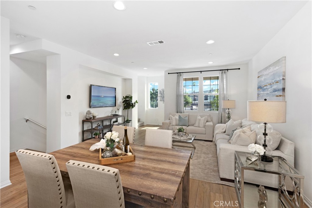 Step into this stunning tri-level townhome located in the highly desirable gated community of Magnolia Square in Buena Park. Designed with both style and functionality in mind, this spacious residence offers 4 bedrooms and 3.5 bathrooms, making it the perfect place to call home. The second floor showcases an open-concept living space with a gourmet kitchen that flows seamlessly into the dining and living areas ideal for both everyday living and entertaining guests. The kitchen is a true centerpiece, featuring quartz countertops, a large center island with seating, a walk-in pantry, and modern maple cabinetry. A private balcony invites you to relax outdoors, while a convenient powder room adds to the thoughtful layout. The third floor is dedicated to comfort, offering three spacious bedrooms and two full bathrooms. The primary suite feels like a retreat with its walk-in closet and bathroom complete with dual vanities and a large walk-in shower. Beautiful finishes enhance the home throughout, including laminate flooring on the first and second floors, plush carpeting in the bedrooms and stairs, and recessed lighting for a modern touch. Additional conveniences include an in-unit laundry room with washer and dryer, and an attached two-car garage with direct access. The gated front patio provides extra privacy and a welcoming outdoor space. Magnolia Square offers wonderful community amenities, including a children’s playground, BBQ area, and greenbelts for outdoor enjoyment. With no Mello-Roos, low HOA dues, and a prime location near the 5 and 91 freeways, this home provides the perfect blend of comfort, convenience, and value. Don’t miss your chance to tour this stylish, move-in-ready home in the heart of Buena Park schedule your private showing today!