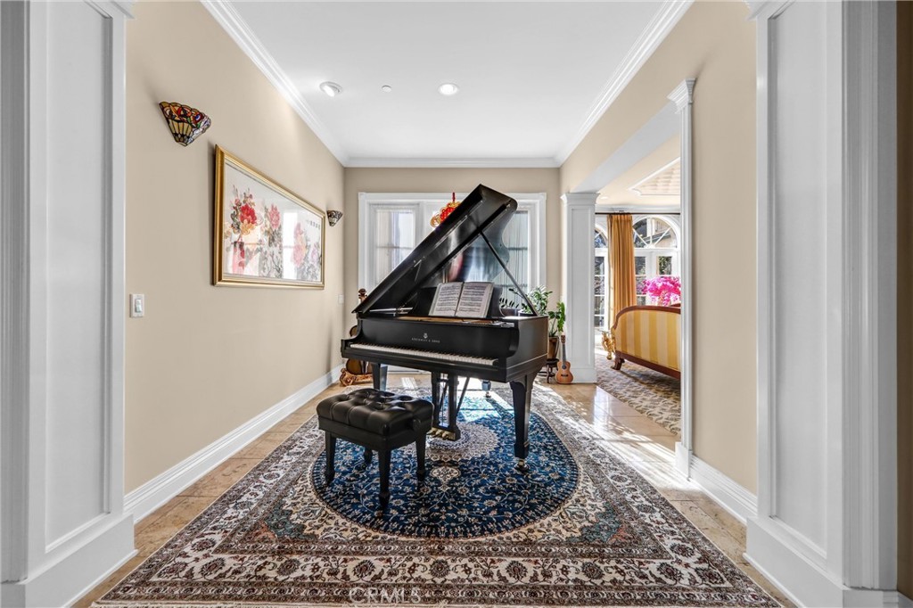 Opulent custom Italian estate, built in 2000, nestled in the most desirable Upper Rancho area of Arcadia, this exceptional residence embodies refined modern luxury, highlighted by bespoke craftsmanship and top-of-the-line building materials throughout. Thoughtfully designed and meticulously executed, it offers an impressive blend of architectural presence and everyday comfort with Sparkling newly remolded swimming pool, fountain, Spa, Cabana, regulation size lighted tennis court and guest house (900sqft included). Upon entry, soaring high ceilings create a dramatic first impression, enhancing the sense of volume and light in both the entryway and the living room. Elegant prodigy-inspired architectural detailing and clean modern lines define the interior, while expansive windows fill the living spaces with natural light and a seamless indoor-outdoor connection. A true architectural masterpiece, the home features a one-of-a-kind stain glass dome over the spiral staircase, showcasing exquisite craftsmanship and adding a distinctive sense of grandeur rarely found. The gourmet kitchen, equipped with of top-of-the-line appliances, open to a breakfast area and butler’s pantry. Fireplaces in prime bedroom, living room, family room and all wood shelfed library. The well-composed layout is signatured for both refined entertaining and relaxed daily living, an elevator shaft has been saved for future convenience. The residence features a dedicated entertainment room equipped with a wet bar and retractable projection screen, offering a private and immersive setting for movie nights, sports viewing, or gatherings. A newly converted fitness room provides a convenient and private space for wellness and daily exercise. Outdoor areas offer a serene retreat, always ready for hosting or unwinding. Perfectly located near award-winning schools, parks, shopping, and dining. It is a remarkable and rare found gem that you can’t miss it!