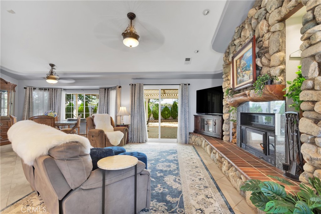 Just West of Oak Hills in the coveted Highland area of Phelan, this area has paved maintained streets and is in the award-winning Snowline Unified school district. This stunning residence offers a perfect blend of beauty and convenience, located only 8 minutes, 5 miles from the I-15 Fwy Oak Hills Exit with spacious 4 bedrooms, 2.5 baths, W/large family room. The open floor plan Gives a warm comfortable feeling the minute you walk through the door, the living room has a Wood burning fire place that has an insert/w fan that puts out heat for the entire area, including kitchen and dining area, The culinary kitchen, has new cabinets, with soft close doors and drawers, and beautiful granite counter tops, the stove is an induction type and the rest of the appliances, Dishwasher, Oven, Micro wave, Trash compactor and Refrigerator are all stainless. The main Bedroom has a through fireplace to the attached bath, that has a jacuzzi bathtub with heater, plus a huge glass standing shower with double heads, and walk-in closet, the two-car garage has been turned into a family room, game room use your imagination. You will enjoy the central vacuum system for easy cleaning. The private backyard has a patio with lots of trees, shrubs and flowers, very peaceful. I can speak from experience when having large gatherings, it is comfortable and enjoyable. The main property is a sprawling 2.5 Acre lot, fully fenced with breathtaking views of the valley and Mountains, lots of fruit trees. A remote-controlled electric gate ensuring privacy and security. The shop has a paved area 17X40 completely covered with two large containers, one on each side for storage, and one along the back that makes it comfortable to work outside. The property is large enough to build an ADU. Schedule your private showing today, you don’t want to miss this one!