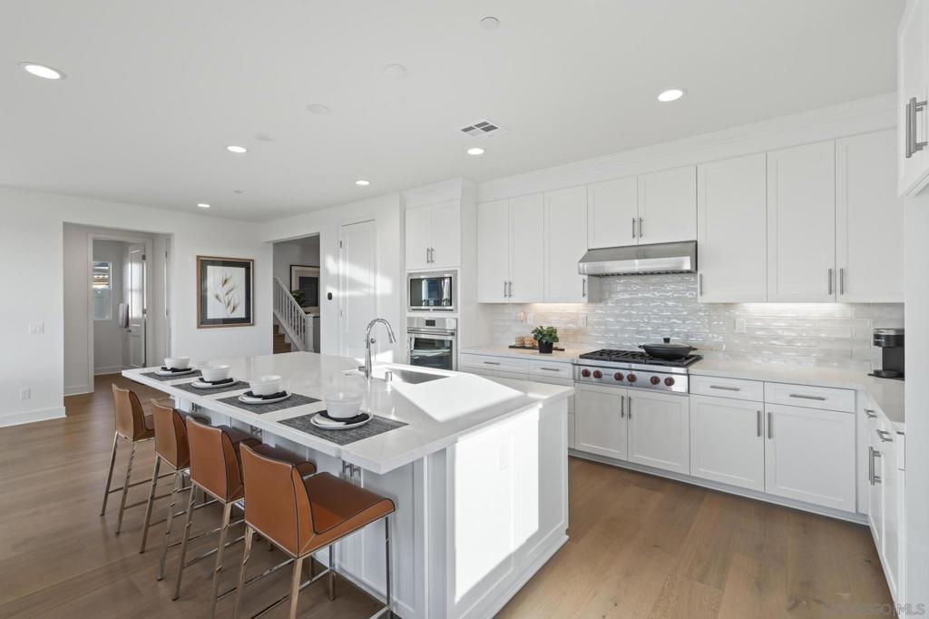 Welcome to Ridgeview, a stunning San Marcos sanctuary where modern design, coastal elegance, and unparalleled comfort converge. Perched on a coveted cul-de-sac with ocean views, this exquisite two-story home spans over 2,900 square feet of meticulously crafted living space, offering the perfect blend of luxury and functionality. Step inside to discover a thoughtful layout with 5 bedrooms, office area, open loft, and 3.5 bathrooms, including a main-floor ensuite bedroom, ideal for guests or multi-generational living. Designed for today’s discerning homeowner, this new ENERGY STAR® certified residence exudes sophistication and sustainability. The heart of the home is a chef’s dream—an open kitchen adorned with stainless steel Wolf appliances, sleek Shaker-style thermofoil cabinetry, quartz counters, custom backsplash, and an expansive island that connects to the light-filled entertaining area and intimate sitting room. Upstairs, the primary suite is a serene haven, with plush carpeting, walk-in closet, and a spa-inspired bathroom with quartz counters, soaking tub, walk-in shower, and dual-sink vanity. Three additional upstairs bedrooms provide ample space for family and guests. Every detail of this home is designed with care, from 9-ft. ceilings and engineered wood flooring to a smart thermostat, solar energy system, and pre-hardwire for electric vehicles for eco-conscious living. Outdoors, the west-facing backyard is a private retreat, where breathtaking sunsets and ocean views set the stage for unforgettable moments. It’s more than a home, it’s the lifestyle you deserve. KB Home builds better homes for a better future. As the first builder to make every new home ENERGY STAR® certified, you enjoy greater comfort and savings with an indoor environment that’s better for your health and well-being. Fun fact. ENERGY STAR® certified homes achieve a 20% energy-efficiency improvement on average. KB homes include standard interior door hardware with antimicrobial product protection that helps reduce the spread of bacteria and germs. They also have high-performance ventilation systems that enhance your home’s environment by regularly introducing fresh outdoor air and reducing indoor air pollutants — plus, environmentally conscious products are used for the flooring, tile, paint and cabinetry. With technology such an integral part of daily life, it’s no surprise that smart-home tech is a priority. Many new homes offer smart-tech features that can improve quality of life with more convenience, energy savings and security. KB Home offers a 10-year limited warranty on your new KB home, so customer service is just a phone call or email away should anything arise. Time for your new KB Home!