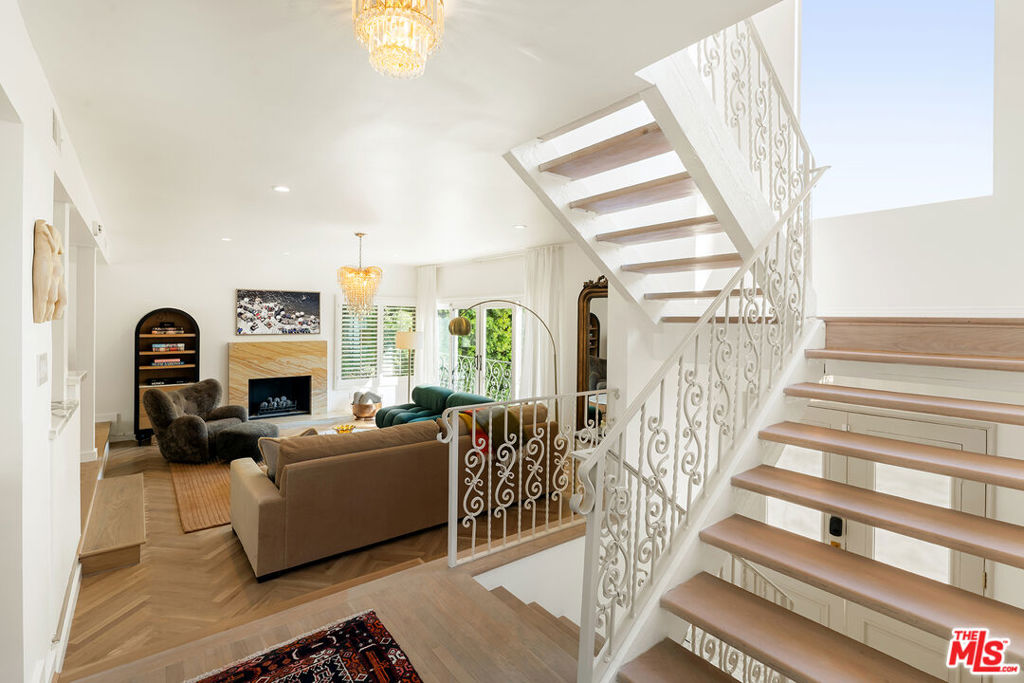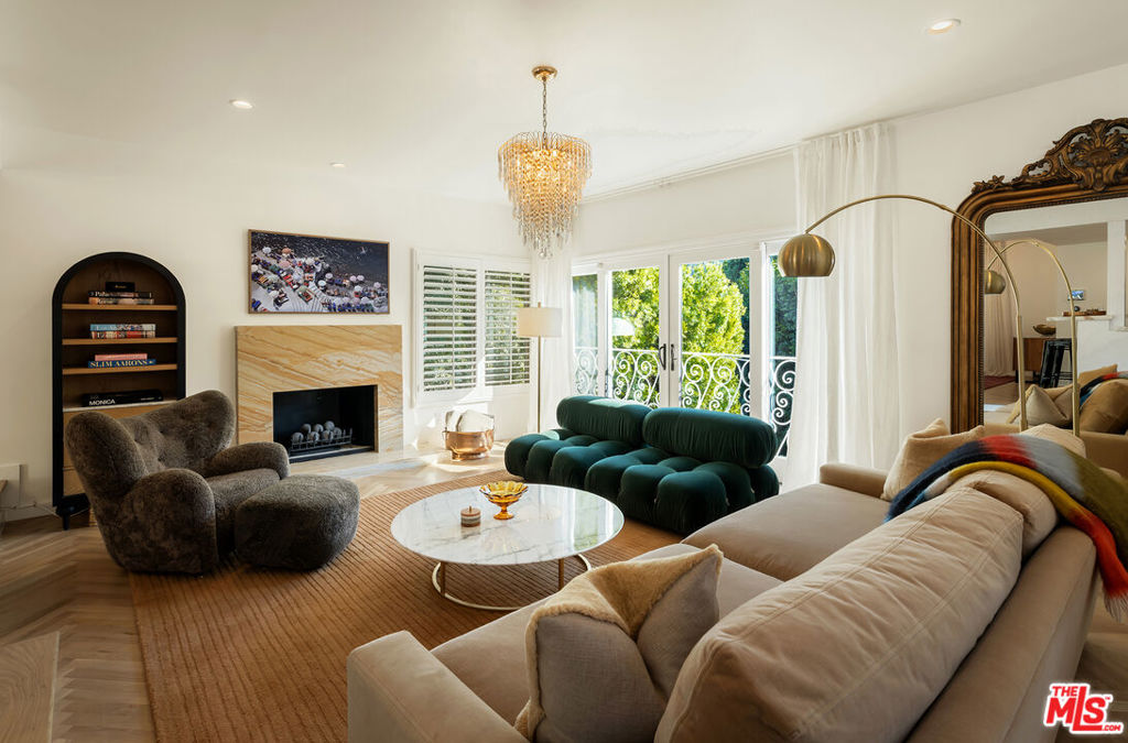 Nestled in a quiet 4 house cul de sac off of San Ysidro Drive, this recently renovated home with a fully equipped guest house is just minutes from everything Beverly Hills has to offer. Offered fully furnished and equipped. Completely ready for an easy move in. The main house creates ample curb appeal with large windows, ivory travertine stairs, and cream wrought iron accents. Nero Marquina & Emperador marble laid in a harlequin pattern sets the tone of the kitchen that includes a 9ft center island accented with shearling barstools, marble slab backsplash, Viking appliances, unlacquered brass hardware, commercial grade range, and brand new walk-in pantry. The formal dining and living rooms are laid out for seamless entertaining with a full bar, camel colored quartzite fireplace, large antique hutch for serving dinner parties, and sliding doors towards the front & back for open air. The moody powder room mixes Nero Marquina & Rojo Alicante marble with an overmount copper sink original to the house. There was special attention paid to opting for natural materials when designing the spaces including natural stones, wool rugs, linen curtains, cotton velvets, wool boucle, shearling/hides, and solid hardwood floors. Crystal chandeliers and a warm color palette invite you home. The primary suite features soaring vaulted ceilings, marble fireplace, walk-in closet, and Carrara marble bathroom with a clawfoot tub. The walkout lower level with Terrazzo floors throughout includes a spacious bedroom with en-suite Calacatta green + Calacatta gold marble & Picasso quartzite full bathroom, full laundry room, and access to the attached garage. The backyard is an oasis with an ivory travertine patio, saltwater pool with jacuzzi, outdoor dining for 10, and Viking grill. The spacious guest house is perched above the backyard and is fully equipped with its own kitchen w/ veined granite countertops, laundry, marble bath, built-in closet space, and wrap-around deck w/grill. Access to the guest house is separate via a side gate with its own address.