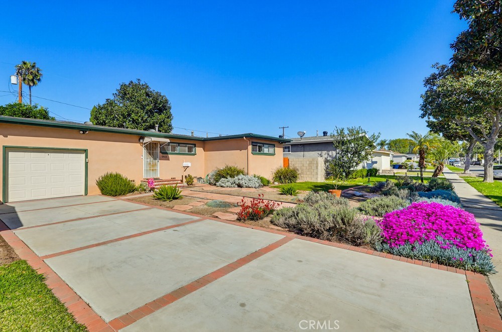 This charming home features hardwood floors and abundant natural light throughout. A spacious living room is anchored by large windows overlooking the backyard, creating a bright and inviting atmosphere. The well-appointed kitchen includes ample cabinetry, recessed lighting, and a cozy breakfast nook, with a door providing direct access to the covered patio. The outdoor area offers a laundry unit, a paved seating space, and a grass lawn, perfect for entertaining or relaxing. A hallway lined with cabinetry for additional storage leads to two generously sized bedrooms, each with ceiling fans and closet space, and a full bathroom completes the home. This property combines functional living spaces with a bright, open layout in a convenient Whittier location.
