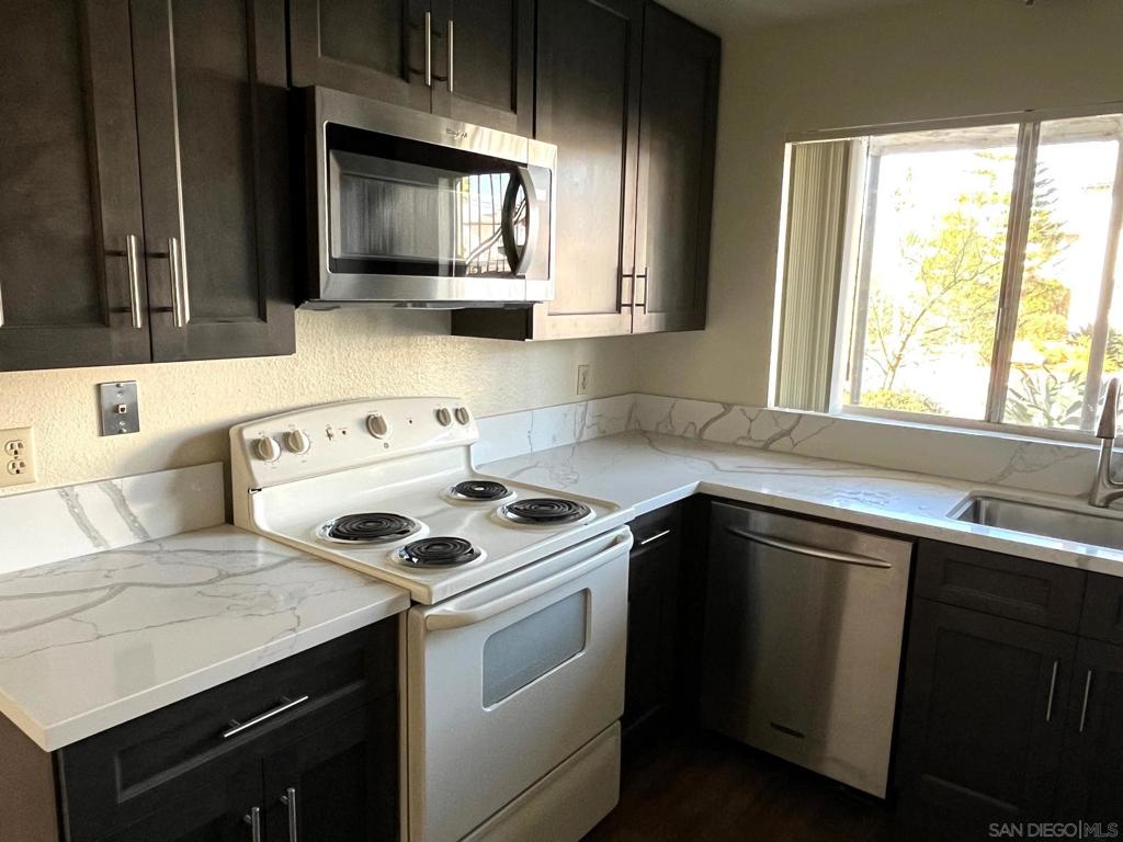 AVAILABLE! LARGE END UNIT 950SQFT! Spacious 2 bedroom 1 bathroom on SOUTH Mollison Ave CALL OR TEXT Ari . Remodeled ! This spacious unit features UPGRADES! – New QUARTZ STONE COUNTERS – STAINLESS STEEL SINK – High End Kohler Pull Down Faucet – New Kitchen CABINETS with Stainless Steel handles. – New Vinyl Wood Plank Floors in Kitchen, Dining Area, and Bathroom – New CEILING FAN, – New GE Electric Stove/Oven – New Large GE Refrigerator with Glass Shelves – New GE Dishwasher – E X T R A L A R GE L I V I N G R O OM NICE QUITE LOCATION on South Mollison (AWAY FROM THE ROAD!) (Walking distance to St Michael and grocery stores) Rarely Available. Small 12 unit well kept complex. Application Fee: $25 per adult (over 18) Owner pays WATER, Sewer, and trash. Tenant pays their own SDG&E and cable. NO PETS ALLOWED. No Smoking. Owner Pays Water, Sewer, Trash. NO PETS, NO SMOKING, 12 month lease .