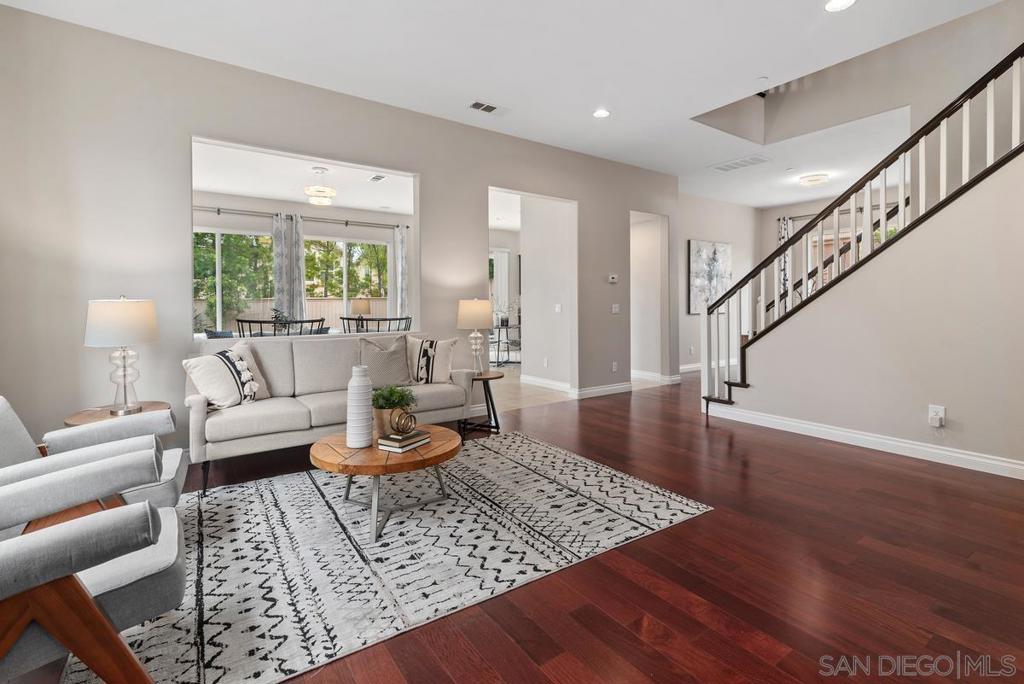 Mello-Roos PAID OFF! Great 4S Ranch home with a short walk to Monterey Ridge Elementary and park! This highly upgraded home offers 5 bedrooms, and 3 Baths including downstairs bedrooms with 1 full bath. Gorgeous Interior With Many Upgrades. All new bathrooms. Gourmet Granite Kitchen and walk in pantry. Hardwood floors throughout the house. 3 car garage great for extra storage Dual zone A/C. Top ranked Poway Schools and 4S Shopping Plaza nearby! Easy access to the freeways. Turn key opportunity!