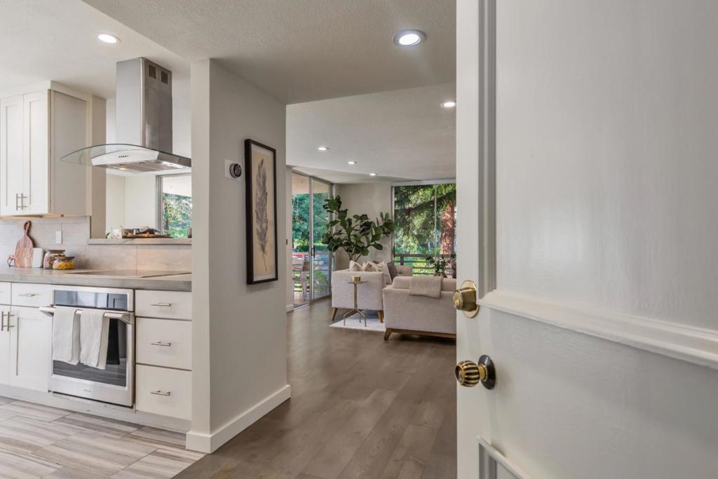 Welcome to this elegant ground-floor condo. This home has been thoughtfully renovated with modern finishes, offering a stylish living experience in one of Silicon Valley’s most private and serene gated communities surrounded by golf fairways. This unit is a sought after corner unit with no shared walls. Explore this stunning interior designed unit with stone finishes, hardwood flooring, fresh professional paint, and recessed lighting throughout. The living and dining areas flow seamlessly, creating the perfect space for entertaining or unwinding. Large windows let in an abundance of light. The chef-inspired kitchen is a true standout, featuring all stainless steel appliances, beautiful granite countertops and a breakfast bar ideal for casual meals or hosting guests. The luxurious primary suite offers a redesigned en-suite bathroom, showcasing high-end fixtures and finishes. The second bedroom is perfect for guests, an office, or a home gym. Additional features include in-unit laundry, level 2 EV charger, 2 parking places, storage, central heat/air conditioning, and private access to the beautiful gounds which include swimming pool, sundeck and club house. Close by: Menlo Park, Standford, shopping, dining, Sand Hill Road and top-rated schools.