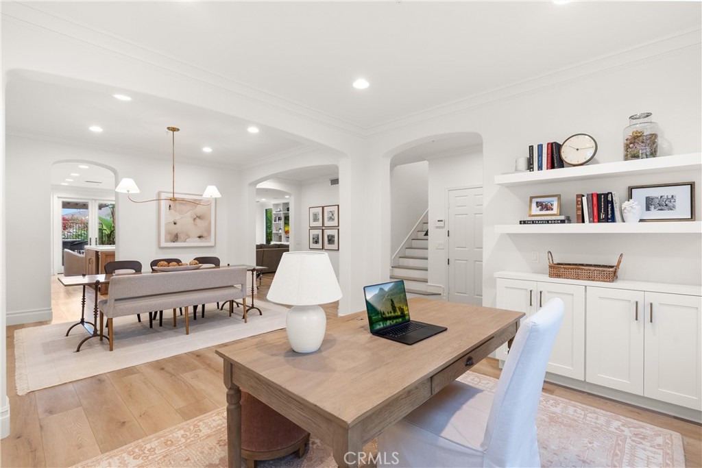 Nestled within the exclusive gated enclave of Reserve West, this remarkable Craftsman-style residence captures ocean views while blending modern luxury with timeless elegance. Perfectly positioned on a serene, single-loaded street, the home makes a striking first impression with refined finishes and expansive La Cantina retractable doors that open effortlessly to create the ultimate indoor-outdoor lifestyle.The gourmet kitchen is beautifully designed with custom cabinetry, striking Taj Mahal quartzite countertops, and a marble mosaic backsplash. Premium Viking appliances, including a built-in refrigerator, and a professional-grade cooktop that provides both everyday convenience and an elevated culinary experience. The versatile floor plan offers five bedrooms, with two conveniently located on the main level. The primary suite captures peaceful hillside and ocean views, both from within and from its private balcony retreat. The newly reimagined, spa-inspired bath exudes sophistication with dual vanities topped in quartz, designer lighting, custom mirrors, a freestanding tub, and elegant tile flooring. A sleek glass-enclosed shower with new tile and fixtures enhances the space, while the expansive walk-in closet with a custom California Closet system completes this luxurious retreat. Refined upgrades extend throughout the home, including plantation shutters, crown molding, custom baseboards, updated ceiling fans, a refined staircase, and extensive built-ins. The expanded laundry room features abundant cabinetry and countertops, while additional bathrooms have been remodeled with new glass shower doors and new shower fixtures. This home is further enhanced with a water purification system, fresh interior paint, epoxy garage flooring, and recessed lighting. Designed for elevated coastal living, the backyard features stone hardscape, lush landscaping, a custom outdoor bar with built-in BBQ and refrigerator, and a spa with dramatic waterfalls and LED lighting. Residents of Reserve West enjoy exclusive amenities including a private clubhouse, pool and spa, and a sports field. Just minutes from world-class beaches, shopping, and dining with the added benefit of no Mello-Roos tax.