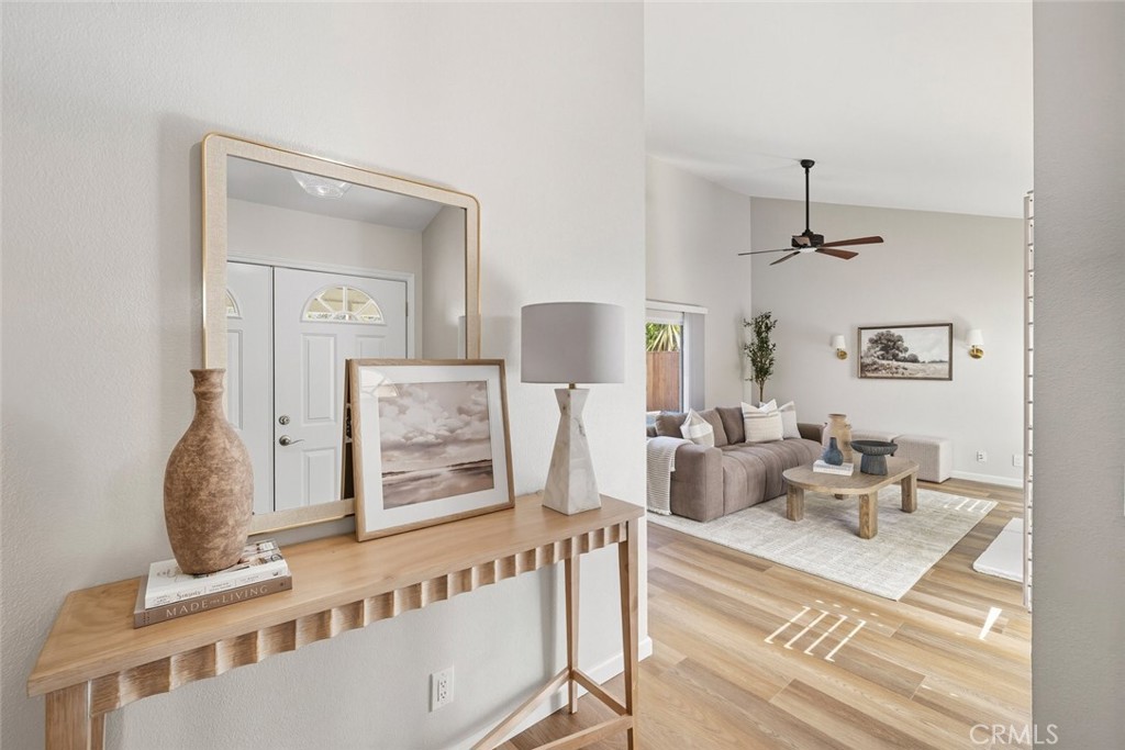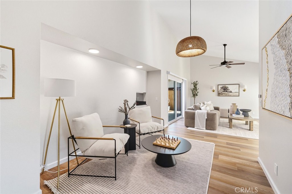 Welcome to Casa Cavalier: A turn key single level residence featuring 5 bedrooms plus detached bonus room, and three full bathrooms. Step through the red double doors into a light-filled living room with soaring vaulted ceilings, a cozy gas-log fireplace, and sliding glass doors that open to a private patio. A flexible area off the living room can serve as a formal dining space or sitting area, complete with a convenient pass-through window from the updated kitchen—perfect for entertaining. The spacious kitchen showcases natural wood cabinetry and granite countertops, opening to a casual dining or flex space with direct access to a patio ideal for outdoor dining and relaxation. Nestled beneath a majestic plum tree, a permitted 144-sq-ft detached bonus room—fully insulated and wired—offers endless possibilities as a home office, yoga studio, creative space, or private retreat. A built-in loft bed provides extra sleeping quarters for guests. Recent upgrades include new flooring, interior paint, roof, fencing, electrical, appliances, interior & exterior light fixtures, bathroom fixtures, outdoor draining, sidewalks, and landscaping. All upgrades were done with ADA accessibility in mind. Brand new wooden fencing enhances backyard privacy and creates a serene outdoor setting. Conveniently located near shopping, elementary and junior high schools, hiking and biking trails, and public transportation, this home combines comfort, flexibility, and lifestyle potential in one inviting package.