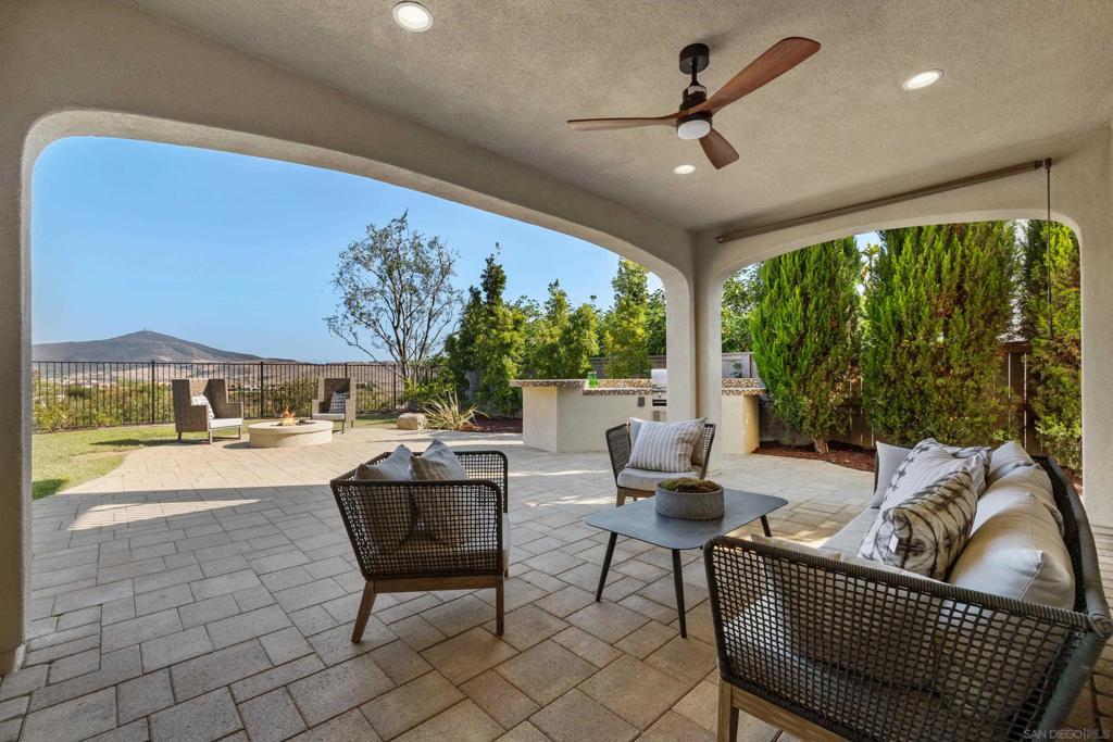 Enjoy breathtaking mountain views from this beautifully upgraded 5bd/4.5ba home in the prestigious Presidio at Del Sur! Designed with entertaining in mind, the open-concept layout seamlessly connects the gourmet kitchen and spacious family room to an inviting backyard oasis—complete with a built-in BBQ, stand-up bar, and cozy firepit, perfect for cool evenings. Thoughtful features incl first-floor bdrm/bath, a generous loft, dedicated home office, a 3-car tandem garage w/custom cabinetry & SOLAR. Blocks from PUSD schools. Home has been freshly painted on the interior and the exterior, updated lighting throughout (incl all new LED recessed lights), new epoxy on garage floor and new carpeting on stairs and 2nd floor. Whole house water softener and water filtration system. Located in the Award Winning Poway Unified School District. Del Sur is a vibrant San Diego master-planned community where the homes and parks were inspired by historic San Diego neighborhoods. Del Sur boasts 18 miles of shared trails, 11 solar heated pools within the community’s 14 parks, and is close to shopping, restaurants, & professional services in Del Sur Town Center. This home is ideally located just blocks from top-rated PUSD schools.