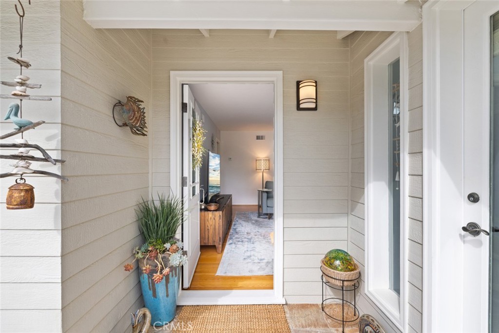 Discover this pristine and bright single-level beach home, ideally located in one of San Clemente’s most sought-after enclaves, just a short walk to some of the area’s favorite local beaches. With 2 bedrooms, 2 bathrooms, and a versatile den/office, this residence offers both comfort and flexibility for coastal living. The den can be opened to living and dining areas with elegant French doors or closed off for privacy—ideal for remote work or a cozy retreat. Inside, enjoy two spacious living areas, one featuring cathedral ceilings and large transom windows above the French doors that lead to a sunny balcony, allowing incredible natural light. The thoughtfully updated interior exudes coastal elegance with a tastefully renovated kitchen showcasing quartz countertops, custom cabinetry, tiled flooring, and stainless steel appliances. The street-to-alley lot offers effortless single-level living, with easy no-stairs access from the alley directly into the back patio and home. The back patio with retractable awnings provides the perfect setting for relaxing afternoons or evening gatherings. Additional features include central heating, dual-pane windows, ceiling fans, an individual laundry area, and a two-car garage with storage and epoxy flooring. Entertain or unwind on the large deck, perfect for outdoor dining or soaking up the coastal breeze. Located just minutes from downtown San Clemente, the Pier, beach trail, world-class surf spots, Dana Point Harbor, and local dining and shopping, this home captures the best of Southern California’s beach lifestyle—where timeless design meets relaxed coastal living.