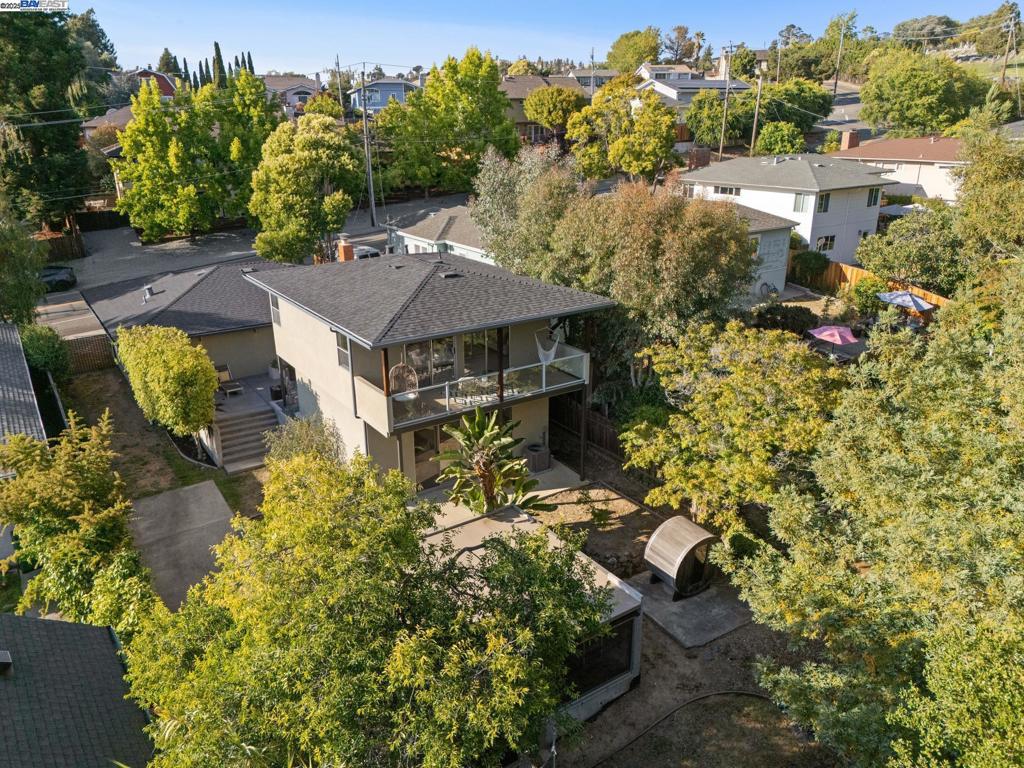 Situated in a peaceful Hayward hillside enclave, this striking Mid-Century Modern residence captures the timeless charm of its era while offering modern-day functionality. Thoughtfully remodeled in 2010, the home is a harmonious blend of clean architectural lines, natural light, and indoor-outdoor living. The main level features a flexible, open layout with two generously sized bedrooms and two full bathrooms. The inviting living room is anchored by a fireplace clad in handcrafted Heath ceramic tile and flows seamlessly into the open-concept kitchen outfitted with warm wood cabinetry and floor-to-ceiling windows that invite the outdoors in. Hardwood flooring runs throughout, adding warmth and elegance. Just a few steps down, a spacious family room offers a perfect space for work, play, or entertaining, with sliding doors that open to a tranquil backyard retreat. The backyard is a true oasis, complete with a relaxing barrel sauna and a concrete carport that offers potential for future development, such as a rooftop deck or additional structure. Upstairs, the expansive primary suite offers the ultimate sanctuary. Vaulted ceilings, a private sitting/media area, a walk-in closet, and a spa-inspired ensuite bath with dual vanities set the tone for comfort.