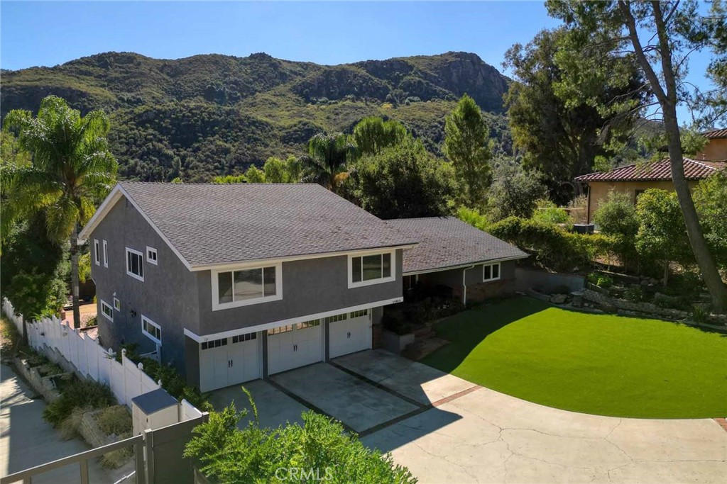 Luxury Live Auction! Bidding to start from $1,900,000! Tucked away down a long, gated private driveway and nestled within a secluded enclave surrounded by the majestic Santa Monica Mountains—just minutes from Malibu—lies this hidden gem sure to impress even the most discerning buyer. This split-level home offers a seamless open floor plan designed for both intimate gatherings and lively entertaining. Fully updated throughout, it features rich wood flooring, soaring vaulted ceilings, and multiple skylights that bathe the living spaces in natural light. A stunning double-sided fireplace anchors the great room, creating a warm and inviting ambiance on cool mountain evenings. The chef’s kitchen is a true centerpiece, boasting quartz countertops, stainless steel appliances, a walk-in pantry, and a professional-grade WOLF range—perfect for culinary enthusiasts. Upstairs, you’ll find three spacious en-suite bedrooms and a dedicated office. The primary suite impresses with vaulted ceilings, a generous walk-in closet, dual vanities, a deep soaking tub, and breathtaking mountain views. The lower level—with its own entrance—offers incredible flexibility, complete with a family room, bedroom, and full bath. Whether used as a guest suite, creative studio, multi-generational living space, or home office, the possibilities are endless. Outdoors, the tiered backyard is a private oasis and an entertainer’s dream. Swim laps in the sparkling pool, relax beneath one of the charming gazebos, or unwind on the expansive deck surrounded by nature’s beauty. As evening falls, the tranquil atmosphere is often accompanied by the melodic calls of wild peacocks echoing through the canyon—reminding you just how special this setting truly is.