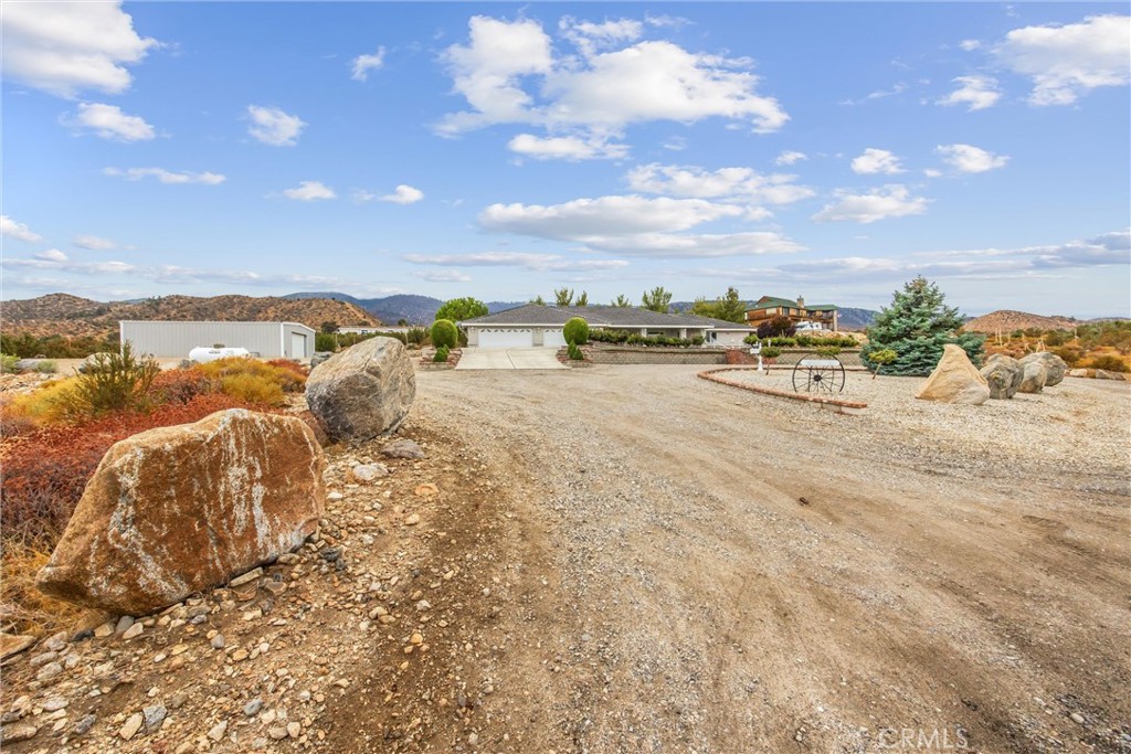 Stunning Custom Home with Breathtaking Views, Large Lot, 4-Car Garage & Workshop This gorgeous custom home, built in 2007, offers incredible valley views that stretch all the way to Apple Valley. Whether you’re enjoying the serene sunrise or the twinkling city lights at night, the front porch provides the perfect setting to relax and take it all in. Situated on over 2 meticulously maintained acres, this 3-bedroom, 2-bathroom home showcases true pride of ownership and was thoughtfully designed for easy, comfortable living. The spacious split floor plan ensures privacy for all, with well-sized bedrooms—one of which offers direct access to the guest bathroom, making it ideal for family or visitors. The expansive primary suite is a true retreat, featuring a cedar-lined walk-in closet, double sinks, and a large private bathroom. Every detail of this home has been considered for both function and comfort. Car enthusiasts and hobbyists will love the oversized 4-car garage with ample space for cars, trucks, and desert toys. Additionally, there’s a 26×20 steel building/workshop—perfect for projects, storage, or a home business. The property also includes RV hookups, and the entire perimeter of the house is surrounded by concrete for convenience and low maintenance. This is a rare opportunity to own a beautiful home with unmatched views, space, and versatility. The possibilities are endless!